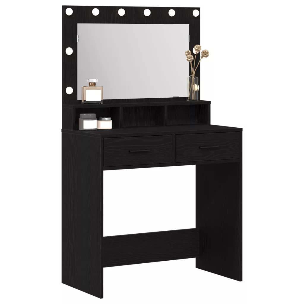 Sminkasztal LED Fénnyel Fekete Tölgyből 79x41x135 cm