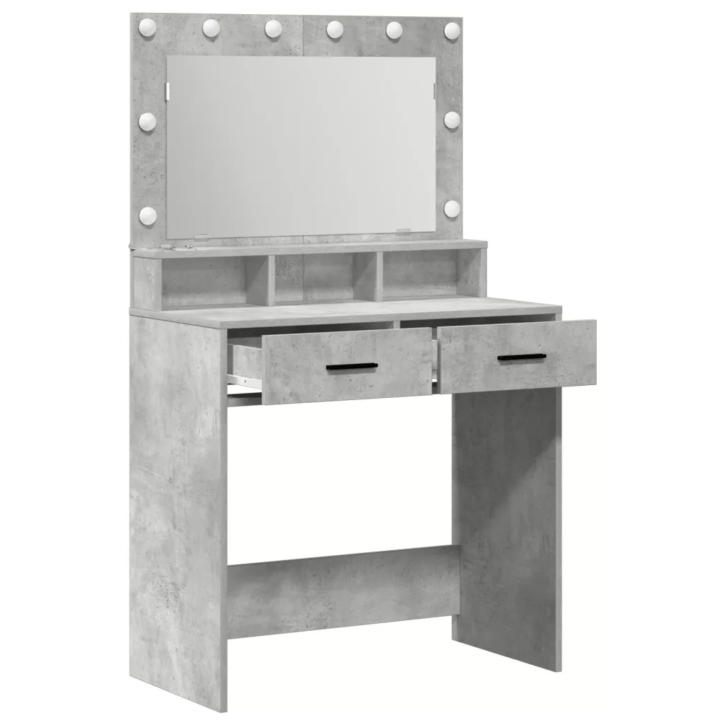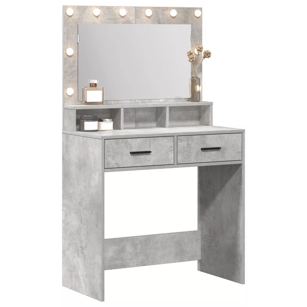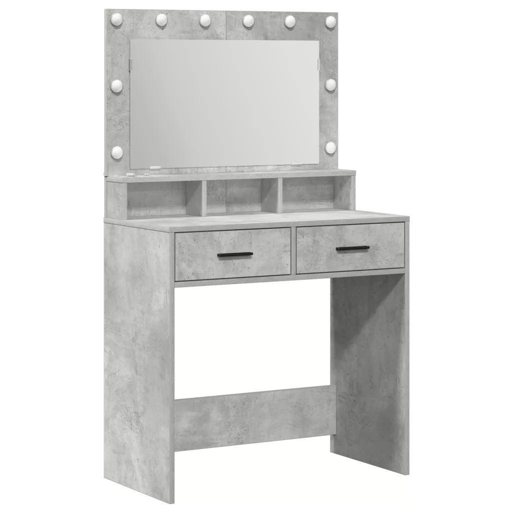Sminkasztal LED Fényekkel Beton Szürke 79x41x135 cm