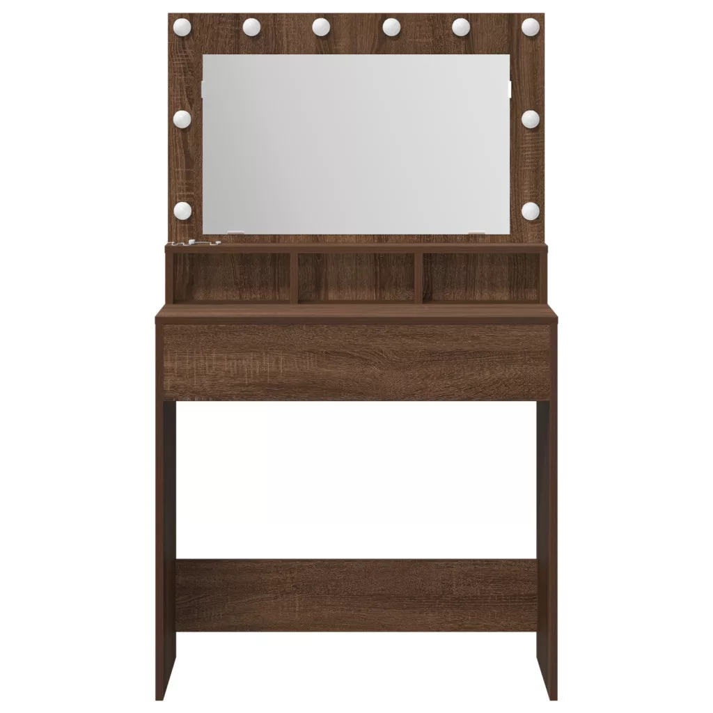 Sminktükör LED Fénnyel, Barna Tölgy, 79x41x135 cm