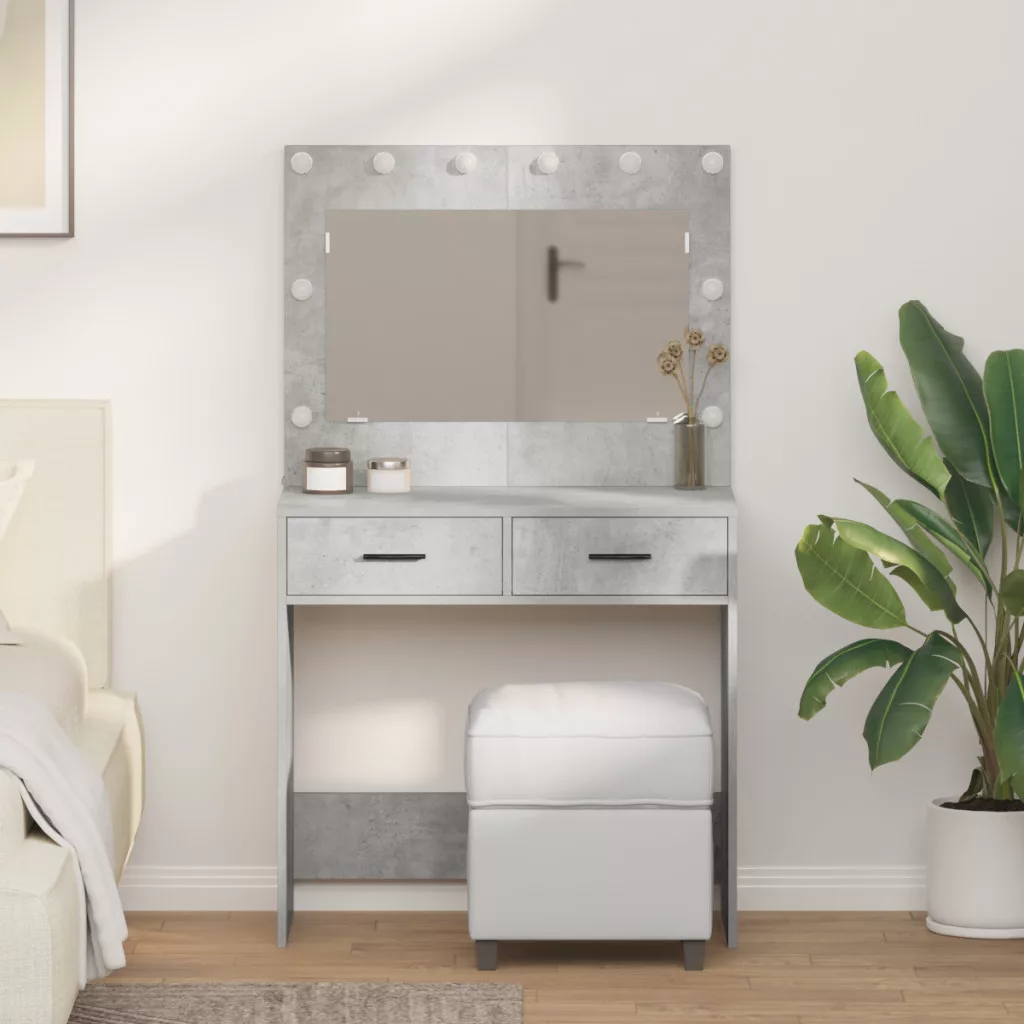 Sminktükör LED világítással Beton szürke 78,5x41x135 cm
