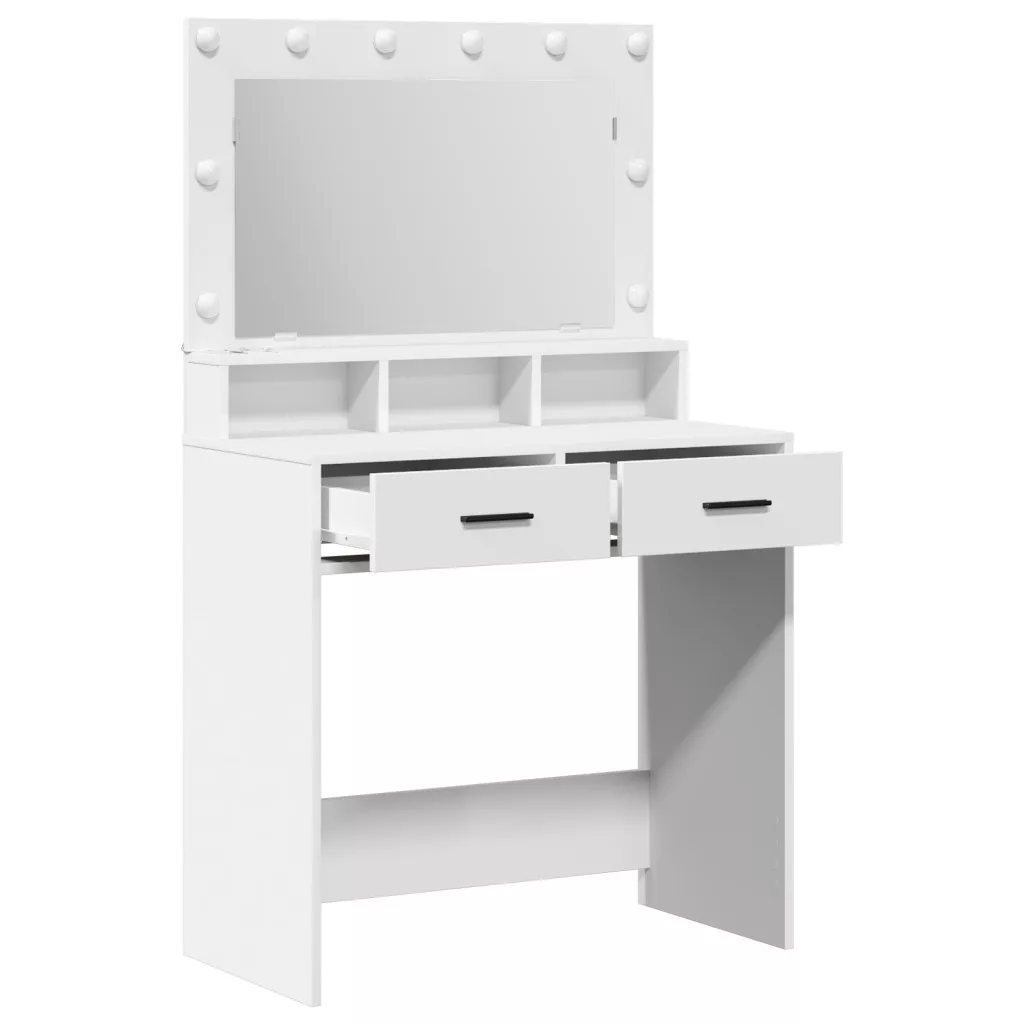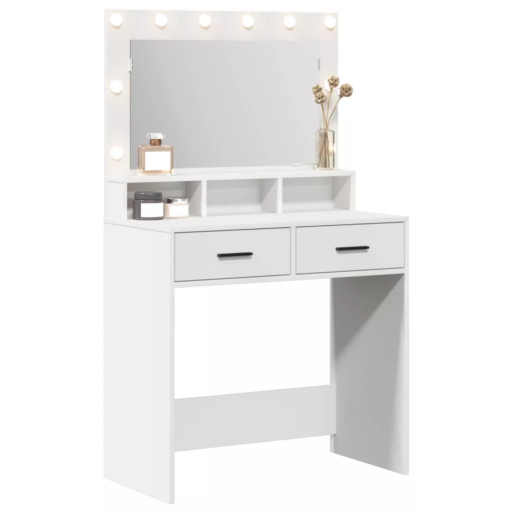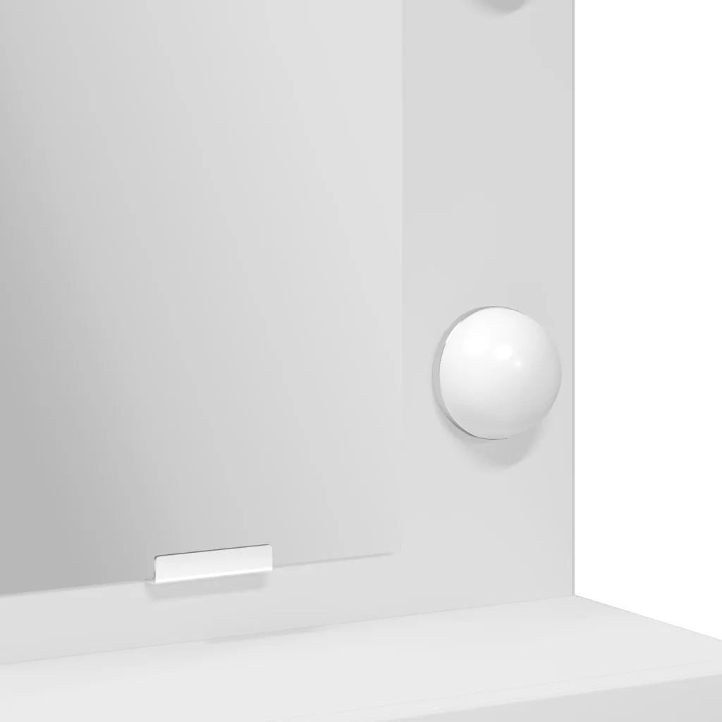 Sminktükör LED világítással, Fehér, 79x41x135 cm