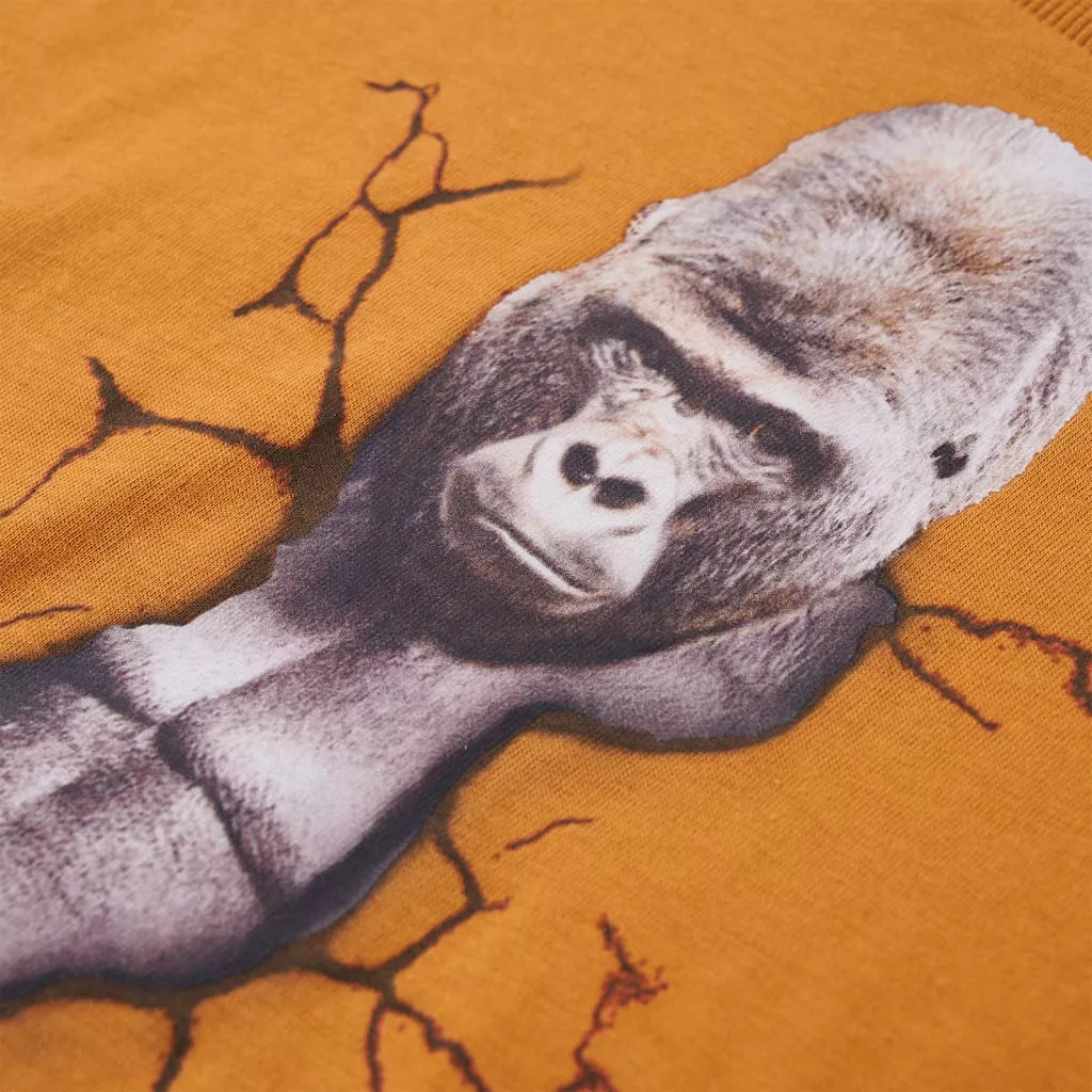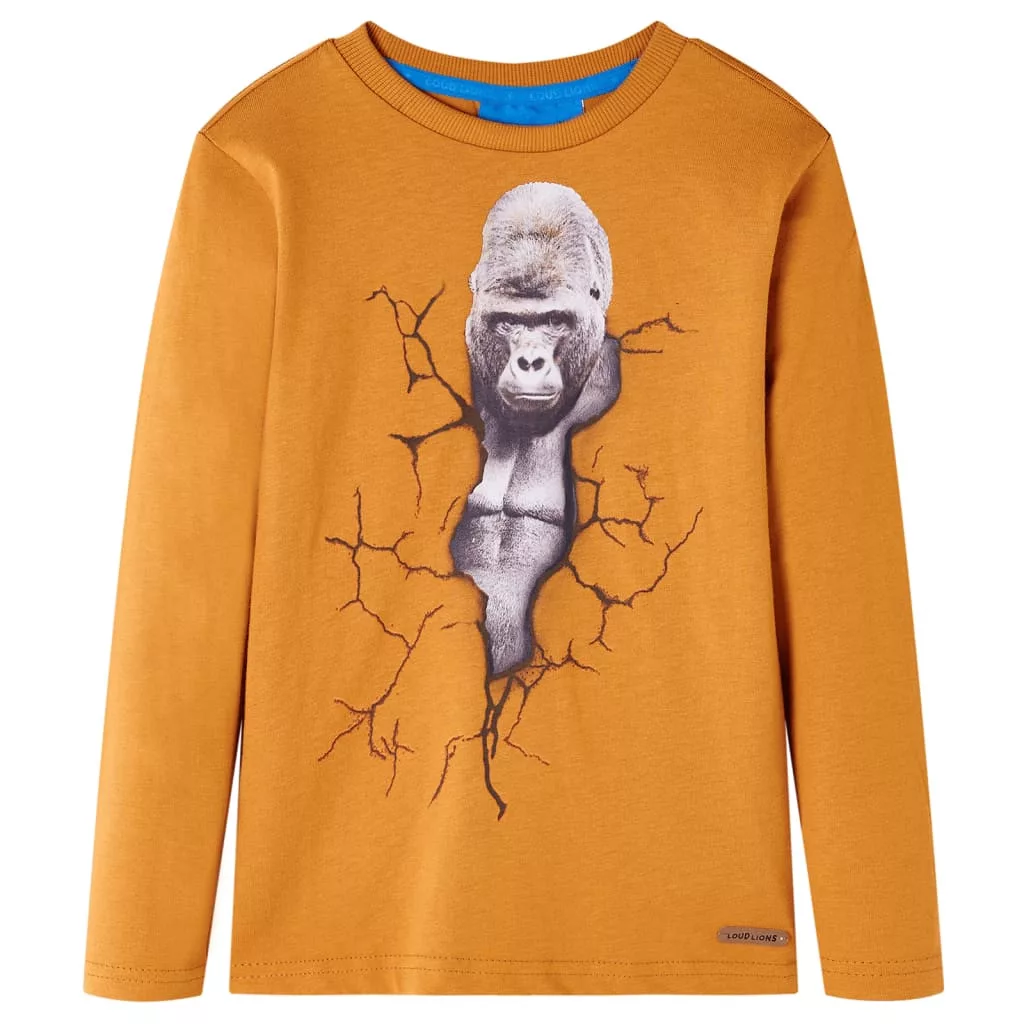 Gyerekruha-kínálatunk a megfizethető, kiváló minőségű és tartós mindennapi viseletet képviseli 1,5 és 10 év közötti gyermekek számára. Kínálatunkban kabátok, pulóverek, ingek és még sok más található változatos stílusban, méretben és színben. A piac magas minőségi színvonalát követve kiváló minőségű anyagokat és fejlett gyártási technikákat alkalmazunk. Ez a gyerek póló hosszú ujjú, kerek nyakkivágással és egyenes modellel rendelkezik. Ezen a sötét okkersárga pólón egy nagy gorilla látható. A hosszú ujjú gyermekpóló 100% pamutból készült, hogy puha és kényelmes tapintású legyen. Fontos: A képen látható mérettáblázat az 1,5-10 éves gyermekek méretét ábrázolja, lefedi a magasságot, a mellkast, a derekat és a csípőt. Könnyedén megtalálhatja gyermeke számára a megfelelő méretet.