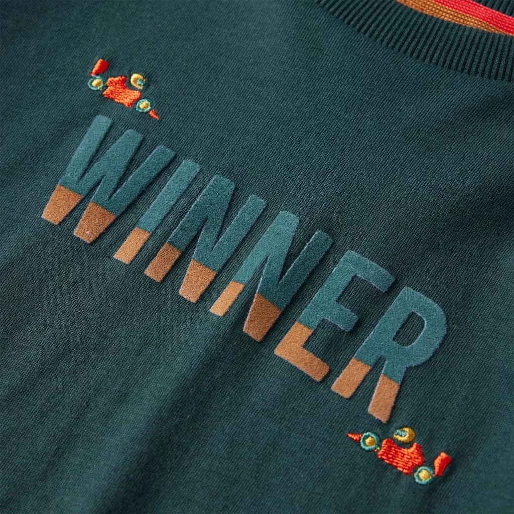 Gyerekruha-kínálatunk a megfizethető, kiváló minőségű és tartós mindennapi viseletet képviseli 1,5 és 10 év közötti gyermekek számára. Kínálatunkban kabátok, pulóverek, ingek és még sok más található változatos stílusban, méretben és színben. A piac magas minőségi színvonalát követve kiváló minőségű anyagokat és fejlett gyártási technikákat alkalmazunk. Ez a hosszú ujjú gyerekpóló kerek nyakkivágású és egyenes szabású. Ez a sötétzöld póló egy "győztes" feliratot ábrázol. A hosszú ujjú gyerekpóló 100% pamutból készült, amely szilikonos és enzimes mosással lett kezelve a puha és kényelmes tapintás érdekében. Fontos: A képen látható mérettáblázat az 1,5-10 éves gyermekek méretét ábrázolja, lefedi a magasságot, a mellkast, a derekat és a csípőt. Könnyedén megtalálhatja gyermeke számára a megfelelő méretet.