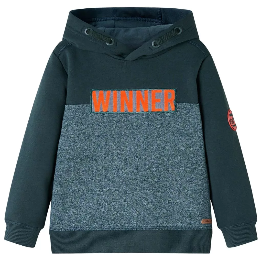 Sötétzöld kapucnis gyerekpulóver 128