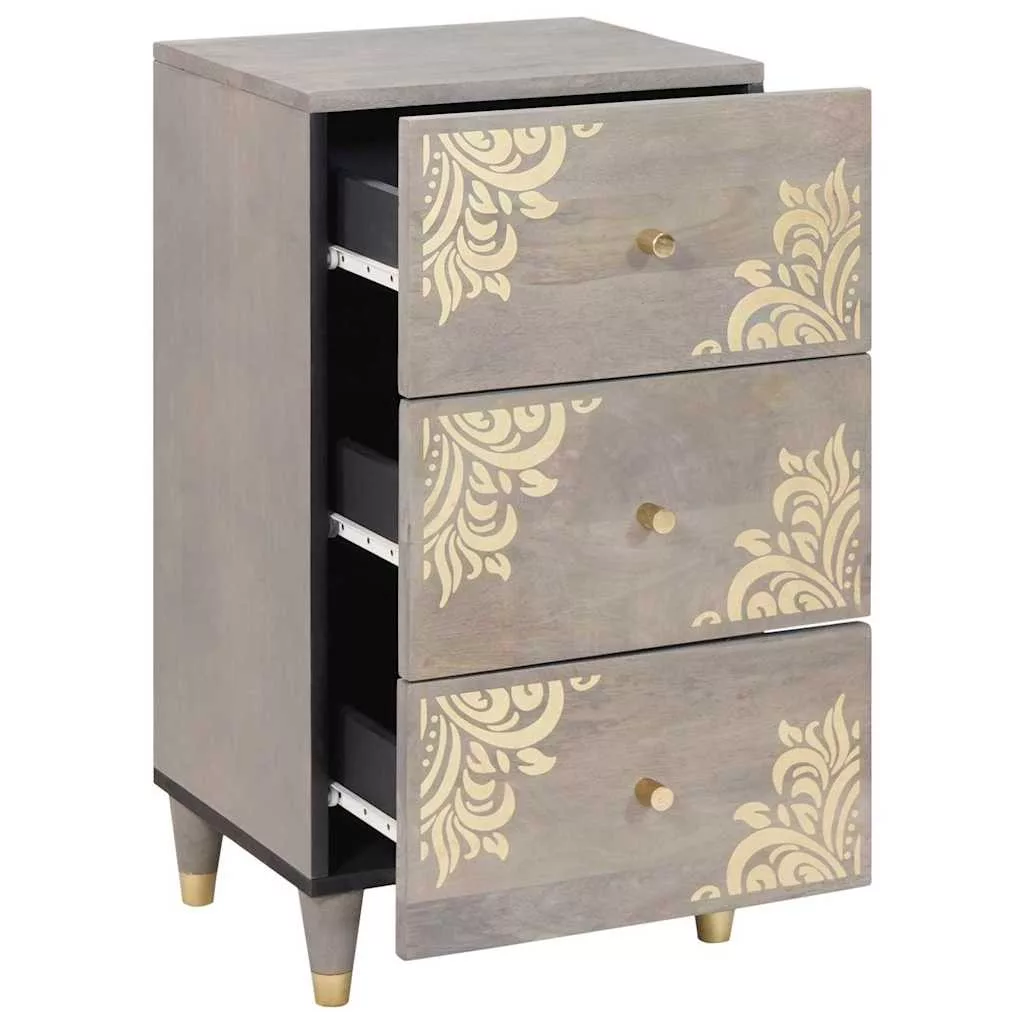 Széf fiókkal Szürke és Arany 40 x 33.5 x 75 cm Tömör mangófa