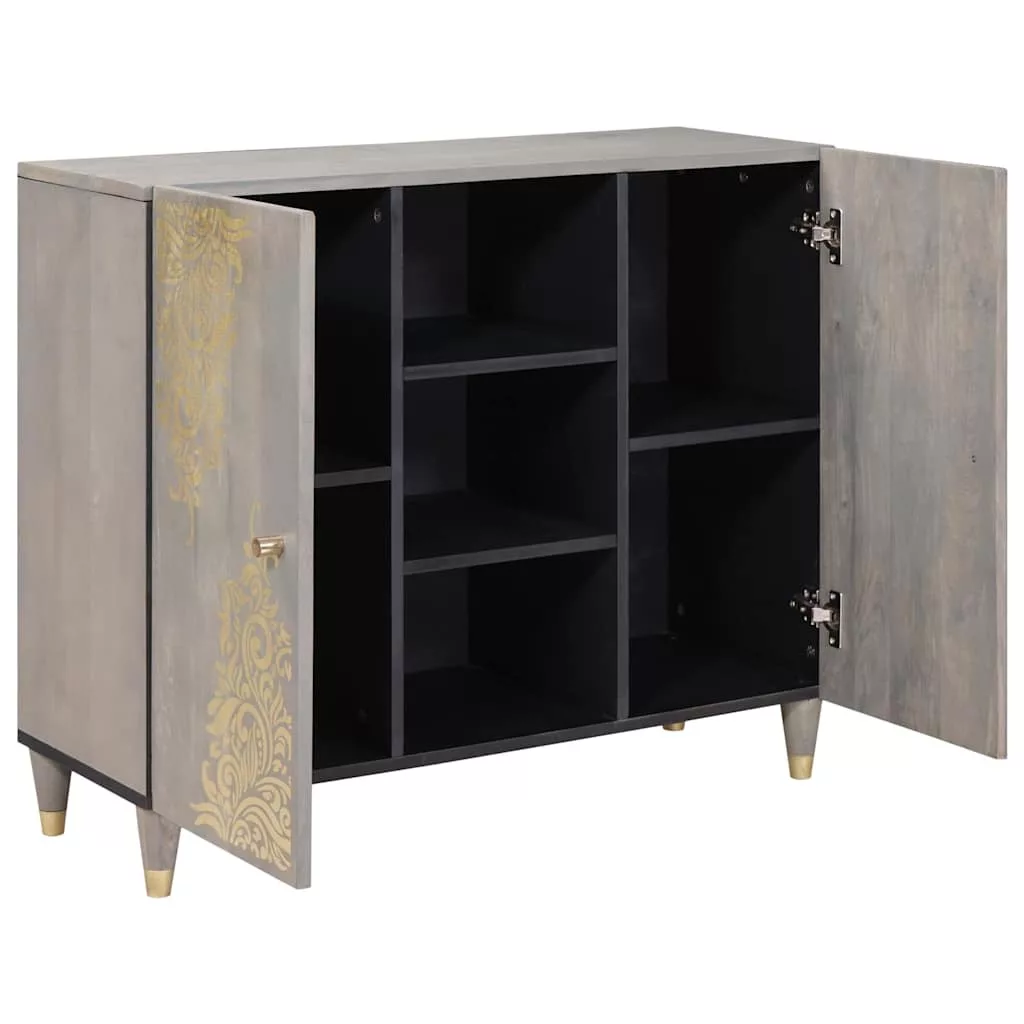Széf polcokkal Szürke és Arany 90 x 33.5 x 75 cm Tömör mangófa