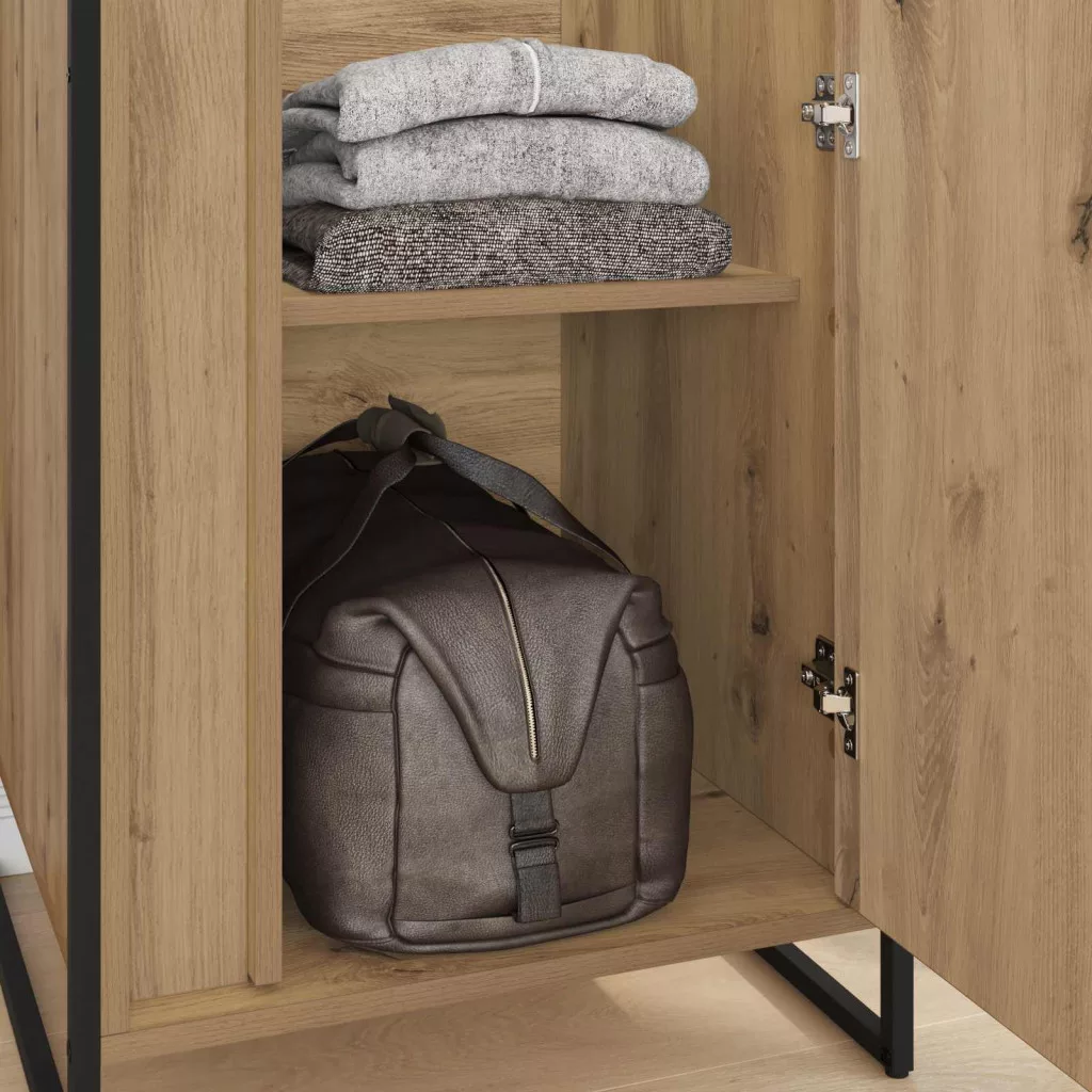 Ez az ipari gardrób igazi figyelemfelkeltő darab bármely hálószobában, modern és praktikus megoldásokkal. A tiszta, négyzet alakú kerete minimalista kinézetet ad, ami jól passzol kortárs és klasszikus dekorációkhoz is. Bőséges helyet kap a ruhák, kiegészítők és egyéb személyes tárgyak tárolására, így a hálószobád rendezett és áttekinthető lesz. Prémium anyagok: A gardrób tartós fából készült, ami stabilitást és sima felületet ad, kiemelve a modern stílust. Az anyagválasztás hosszú távú használatot biztosít, ezért praktikus tárolási megoldás bármely hálószobában. Komponens részletek: A masszív szerkezet fából készült háttal és kerettel rendelkezik, erős acél lábakkal a kicsit extra szilárdságért. Ezek a részek stílust és funkciót egyaránt biztosítanak, így a gardrób a szobád fő attrakciója lesz. Funkcionális dizájn: Ezt a gardróbot hosszú használatra tervezték, hogy bírja a mindennapi igénybevételt. A négyzet forma stabilitást ad, miközben maximális tárolóhelyet kínál. A dizájn tudatosan egyszerű, megőrzi a funkcionalitást, de a stílust is. Szobaalkalmasság: Kifejezetten beltéri használatra készült, főleg hálószobákban, ez a gardrób ipari stílust ad a privát teredhez. Sokoldalú dizájnja könnyedén beleillik bármilyen belső térbe, legyen az minimalista vagy hagyományos. Karbon tartás: Az esztétikus megjelenés megőrzéséhez töröld le a felületeket egy száraz ruhával, és kerüld a durva vegyszereket, így a gardrób mindig olyan vonzó marad, mint az első nap.