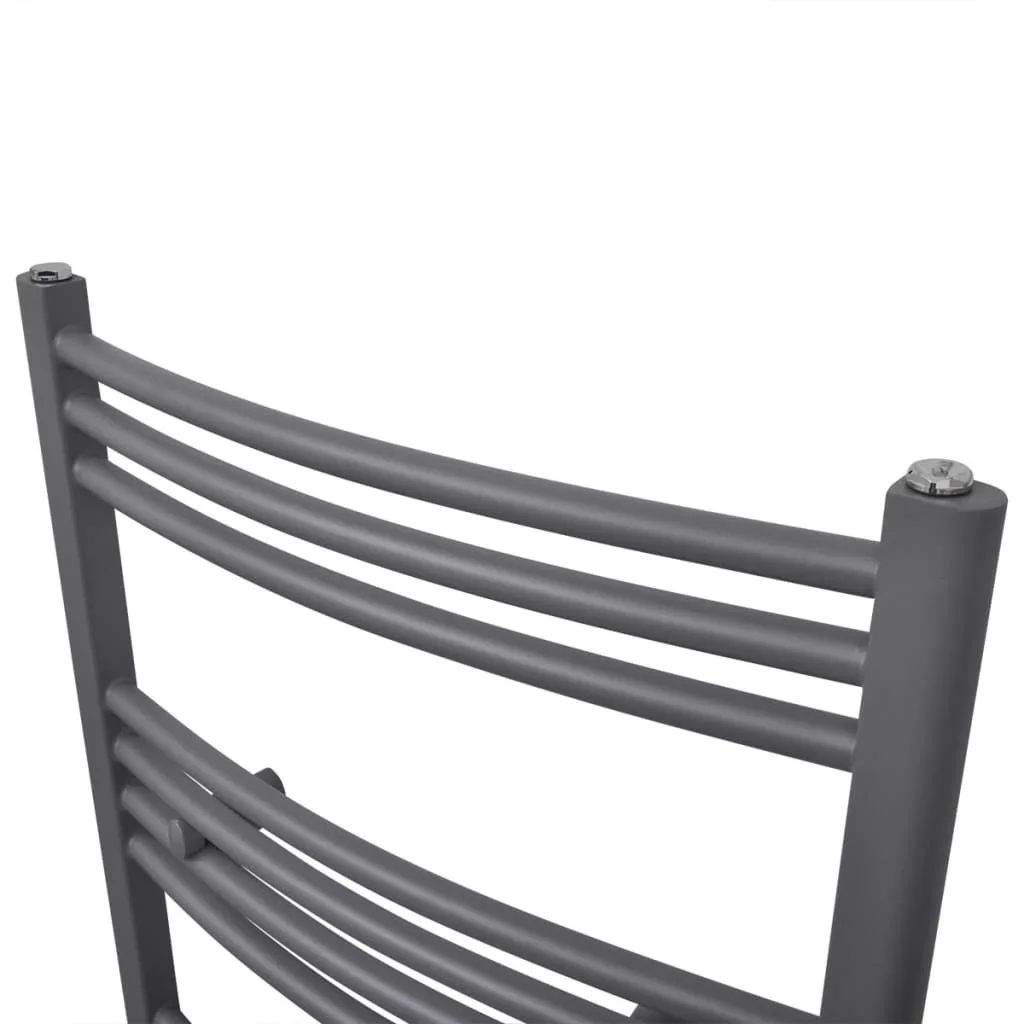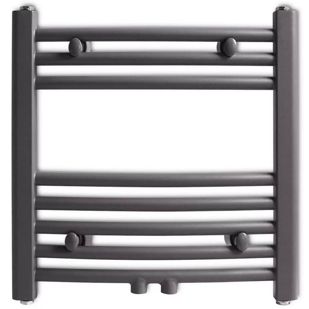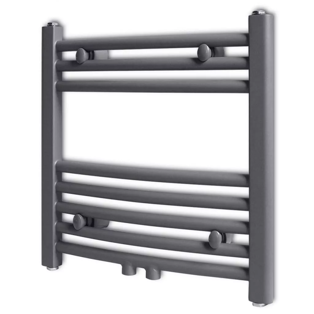 Szürke fürdőszobai íves törölközőtartó központi fűtéssel 480x480 mm