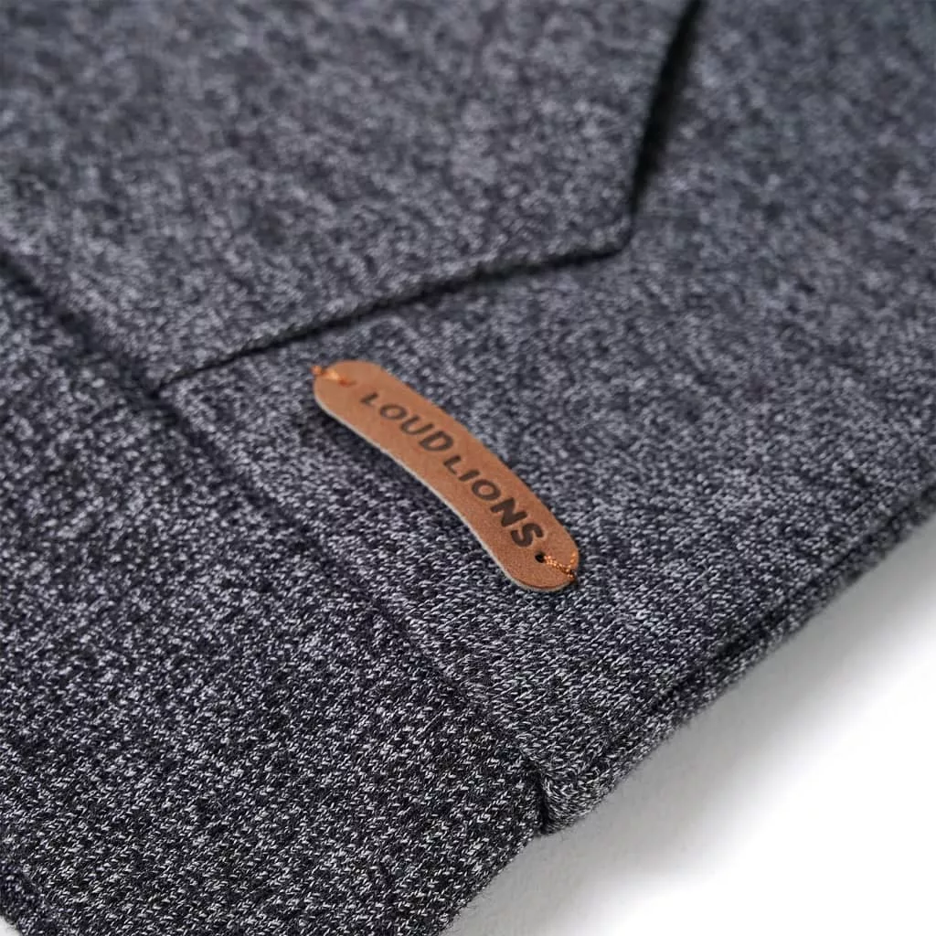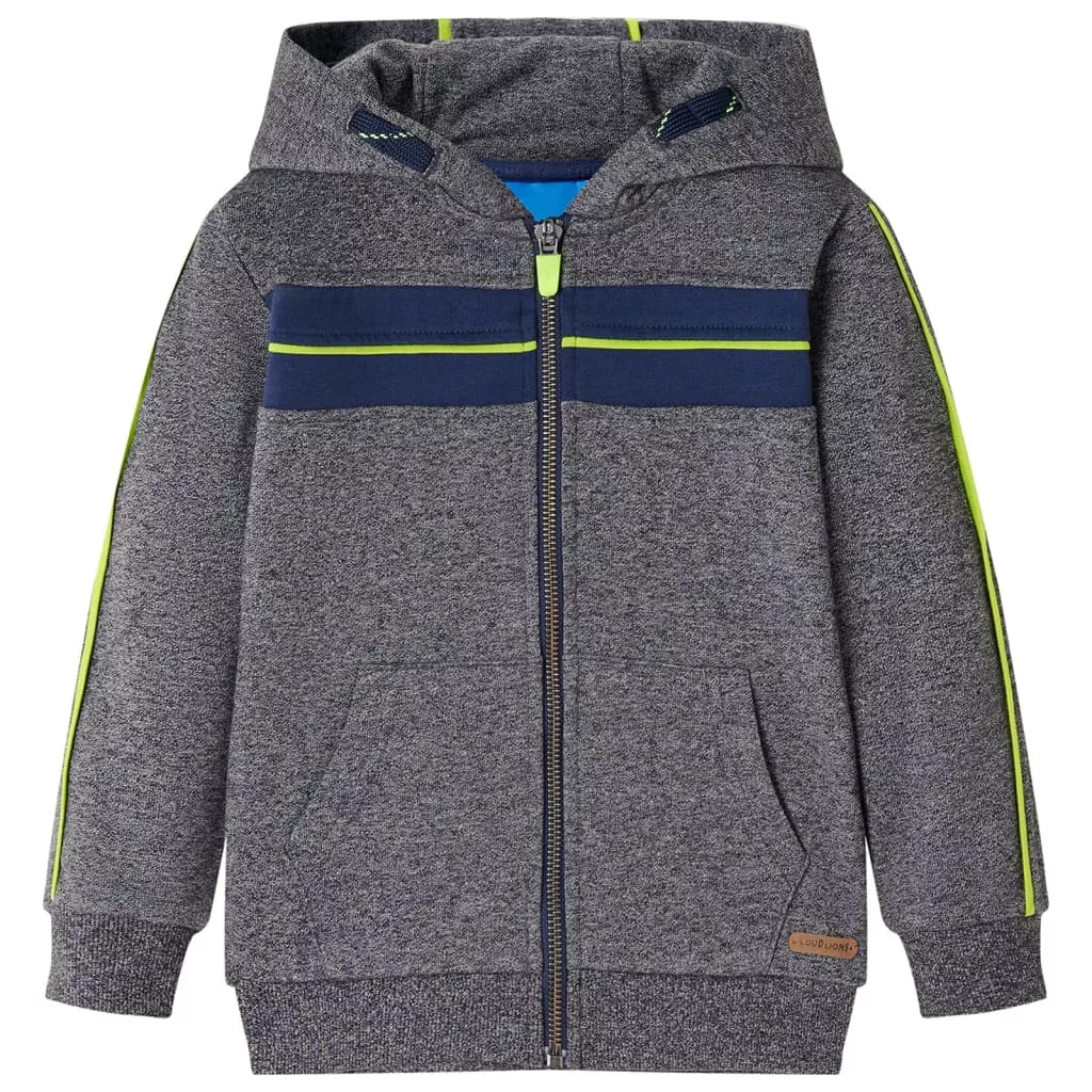 Szürke melange kapucnis gyerekpulóver cipzárral 104