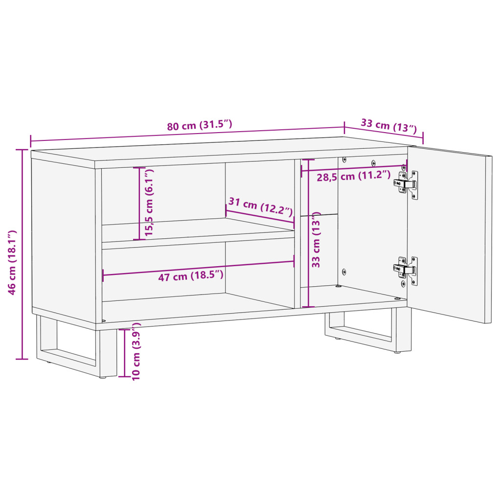 TV Szekrény - 80x31.5x46 cm Tömör Mangó és Mérnöki Fa