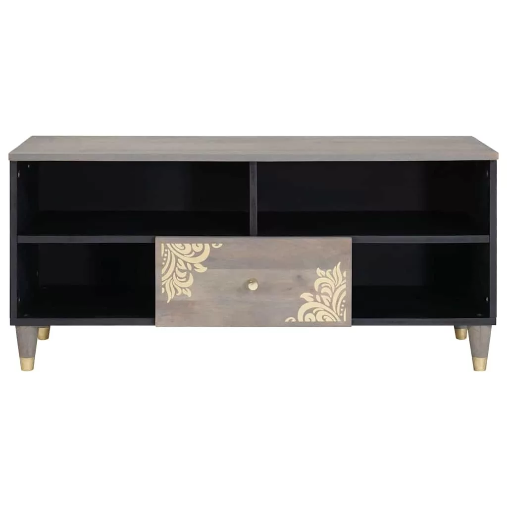 TV szekrény Szürke és Arany 100 x 33.5 x 46 cm Tömör mangófa