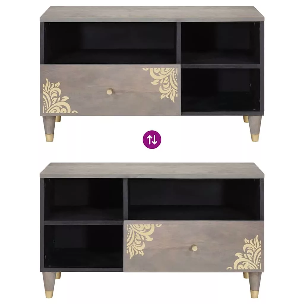 TV szekrény Szürke és Arany 80 x 33.5 x 46 cm Tömör mangófa