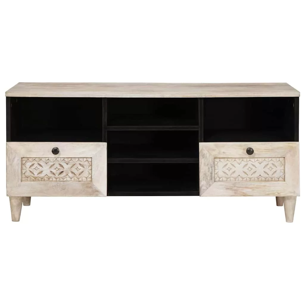 TV szekrény fiókkal Fehér 100 x 33 x 46 cm tömör mangófa