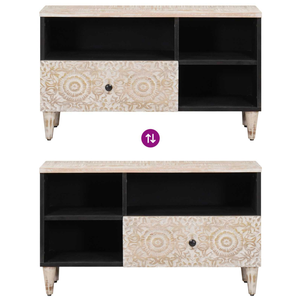 TV szekrény fiókkal Fehér 80 x 33,5 x 46 cm Tömör Mangófát