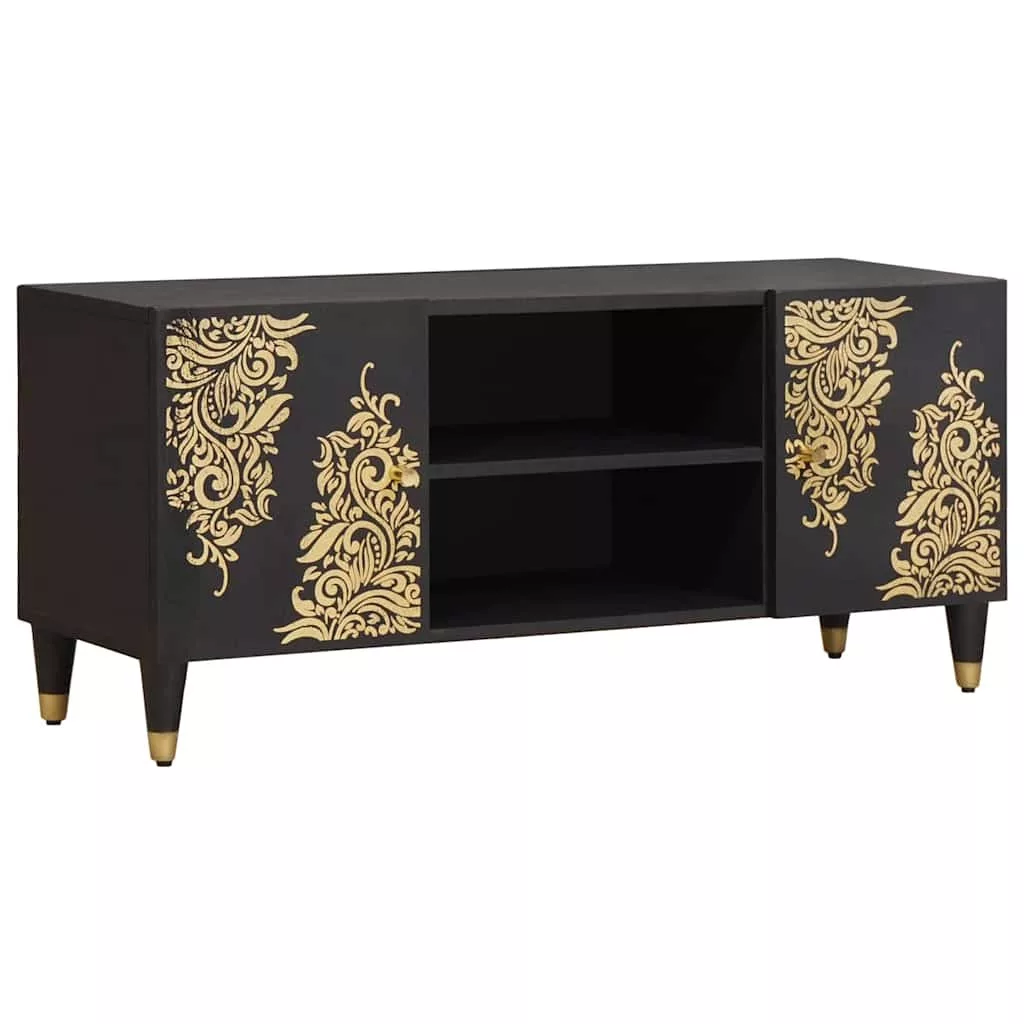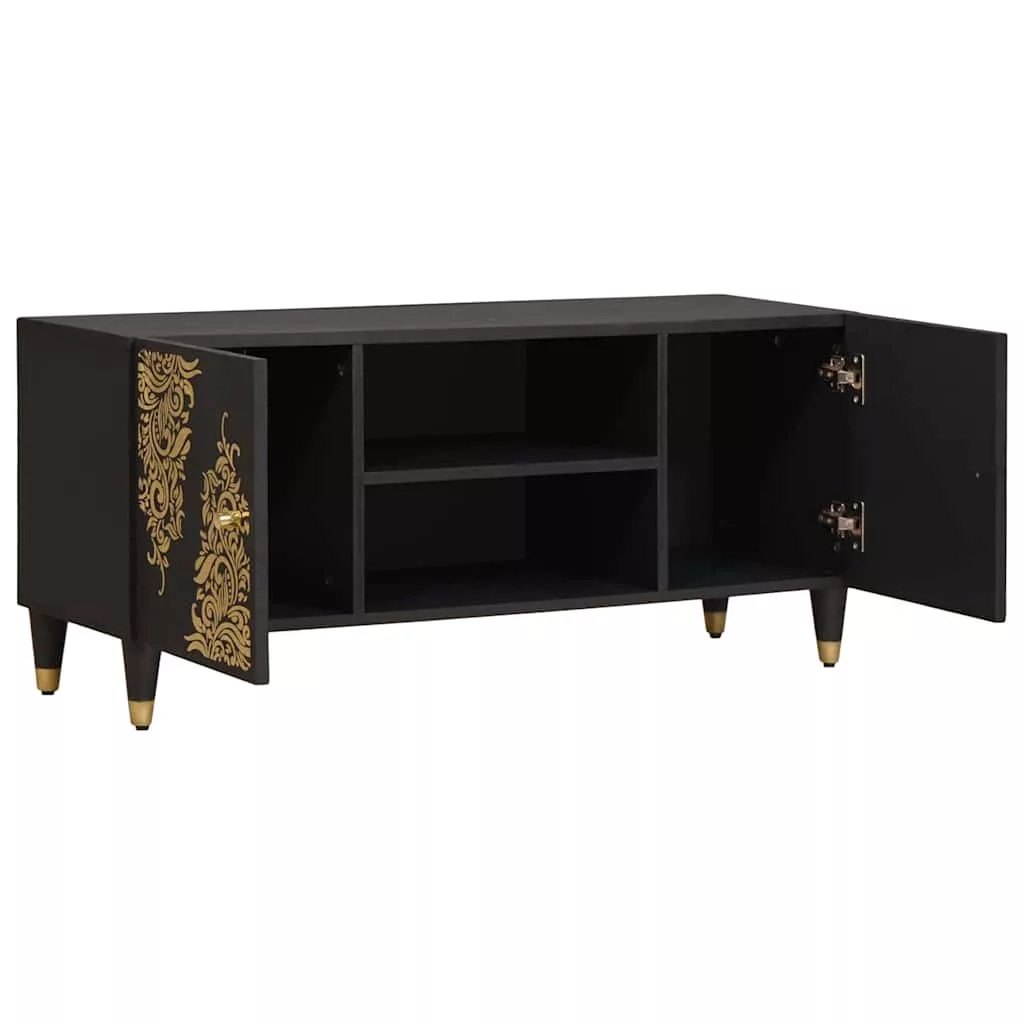 TV szekrény polcokkal Fekete 105 x 33 x 46 cm Tömör Mangófát