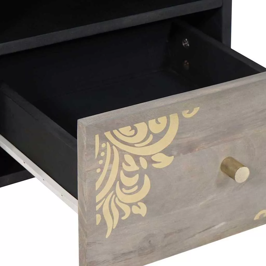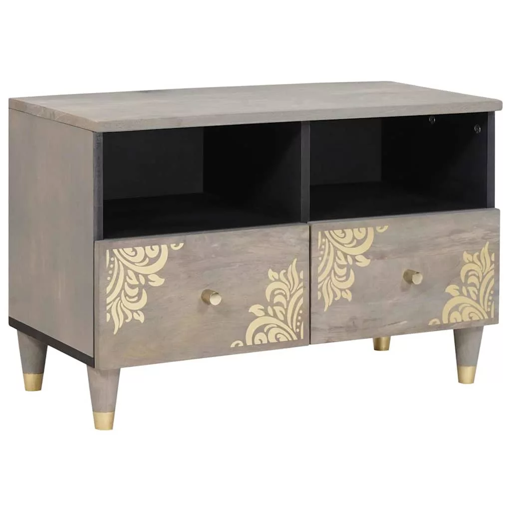 TV szekrény polcokkal tárolóval Szürke és Arany Tömör mangófa