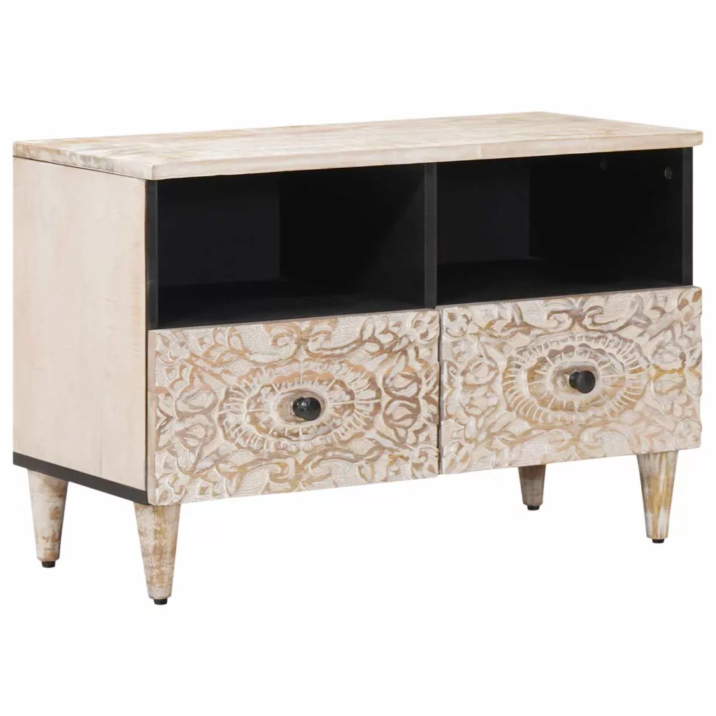 TV szekrény tárolóval Fehér 70 x 33,5 x 46 cm Tömör Mangófát