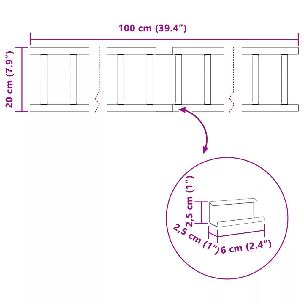 100 x 2,5 x 20 cm
