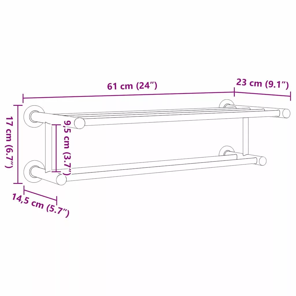 Ez a modern törölközőtartó ideális kiegészítő bármilyen kortárs fürdőszobai dekorhoz. Praktikus és letisztult megjelenésével ez a törölközőtartó zökkenőmentesen integrálható bármilyen belső stílusba. Simára polírozott felülete és robosztus rozsdamentes acél felépítése elegáns és tartós választást jelent a törölköző tárolásra. Az egyszerű, téglalap alakú design visszafogott eleganciát kölcsönöz, így megfelelő választás egyéneknek vagy családoknak, akik a funkcionalitást a stílussal szeretnék párosítani. Rozsdamentes acél szerkezet Prémium rozsdamentes acélból készült, ez a törölközőtartó páratlan tartósságot kínál, garantálva a rozsdamentes élményt. A rozsdamentes acél anyag hozzáadja a robosztus szerkezethez, biztosítva a hosszú élettartamot és a közönséges kopás ellenállását. Hőálló tulajdonságai ideálissá teszik a nagy páratartalmú és hőmérséklet-változásoknak kitett fürdőszobákhoz, megőrizve jó állapotát az idő múlásával. Tartós és egyszerű design Minimalista, de rendkívül funkcionális szerkezete egyszerű vonalaival széleskörű belső stílusokhoz alkalmazkodik. Bár az egyszerű építés mellett nem enged a tartósságból, a rack dizájnja stabil és masszív szerkezetet biztosít, amely több törölközőt is elbír tippre, hatékony megoldást nyújtva a forgalmas háztartások vagy közös lakóterek számára. Téglalap alakú helytakarékos forma 61 x 23 x 17 cm-es méreteivel ez a rack könnyedén illeszkedik a kompakt terekbe, biztosítva, hogy a fürdőszobádban ne pazarolj el egy négyzetcentimétert sem. Legyen szó zsúfolt zuhanyzókról vagy keskeny előszobákról, okos konfigurációja lehetővé teszi a hatékony törölközőszervezést anélkül, hogy zsúfolttá tenné a teret, növelve a hely rendszerét és funkcionalitását. Beltéri használatra Beltéri beállításokhoz tervezve tökéletesen illeszkedik a kortárs dekorhoz különféle fürdőszobai belső terekben. A folyamatos rozsdamentes acél bevonat megőrzi esztétikai vonzerejét, egyesítve a praktikát és az eleganciát. A beltéri használhatóság biztosítja, hogy optimális állapotban maradjon, javítva a fürdőszobai bútorok élettartamát. Egyszerű karbantartás A fényességének megőrzése egyszerű és problémamentes. Csak egy gyors törlés nedves törlőkendővel elegendő, hogy a rack ragyogó állapotban maradjon. Felhasználóbarát karbantartási utasításai lehetővé teszik, hogy még forgalmas háztartásokban is kezelhető maradjon, biztosítva, hogy tartsákat a stílusos és rendezett fürdőszobai környezet megőrzésére.