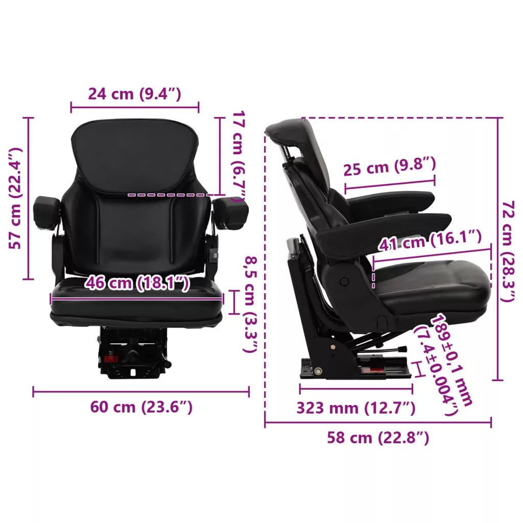 Traktor ülés felfüggesztéssel Fekete 60 x 58 x 72 cm