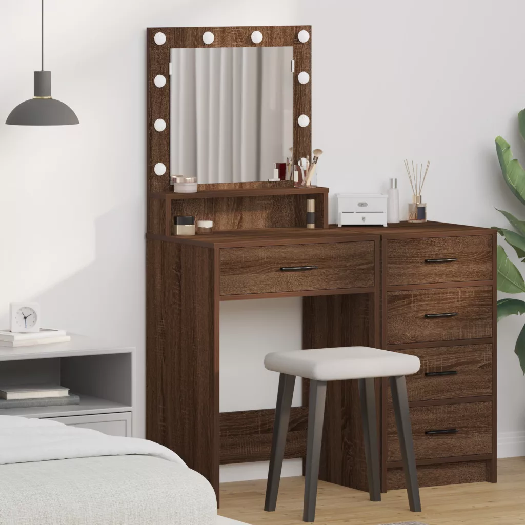 Tükörasztal LED világítással, barna tölgy, 50x41x135 cm