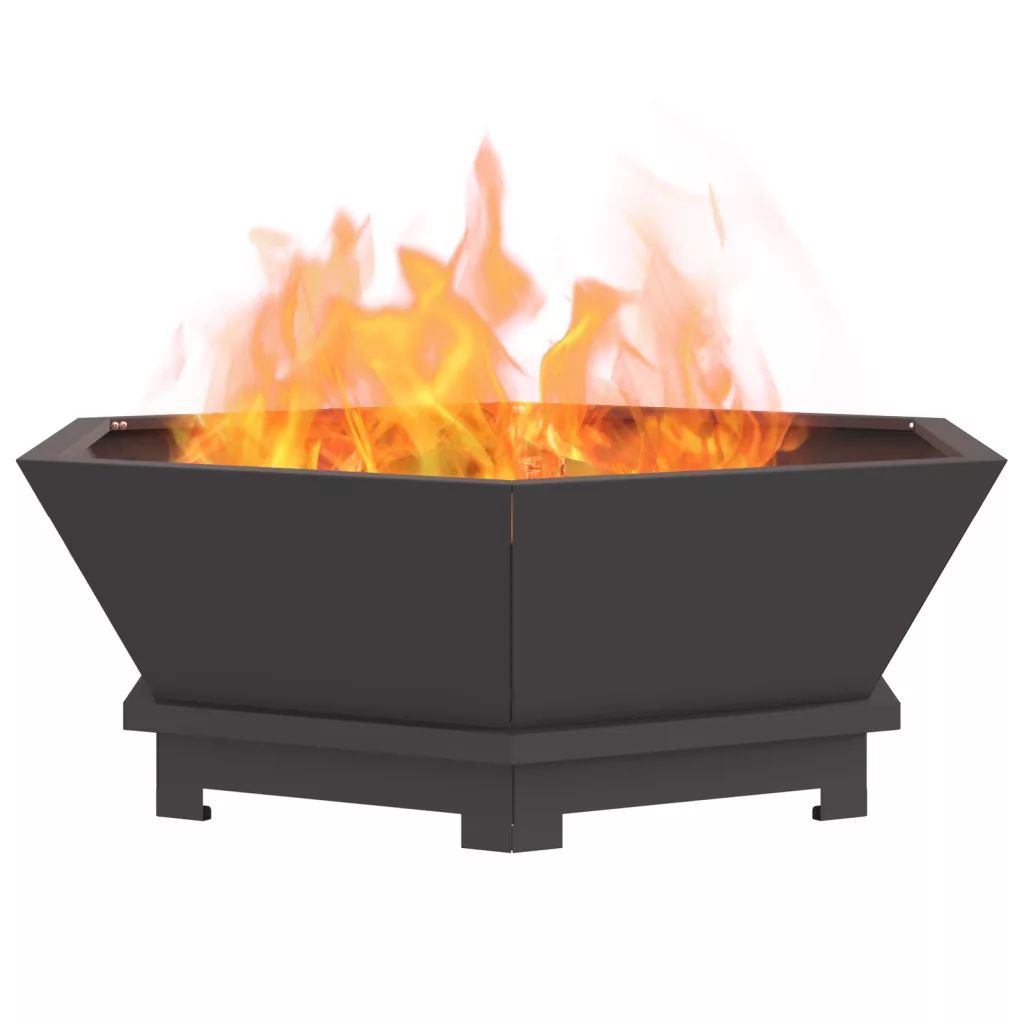 Ez a Modern Ötszögű Tűzrakó kötelező darab minden kültéri térhez. Kellemes melegséget áraszt a hűvösebb estéken. Tökéletesen illik a kertbe vagy a teraszra, modern dizájnja pedig jól mutat, így stílusos kiegészítője a térnek. Élvezd a fatüzelés melegét, tökéletes kültéri eseményekhez és pihenéshez. Tartós felépítése biztosítja, hogy évekig élvezhesd a szeretteiddel együtt. A rozsdamentes anyagok ellenállnak az időjárás viszontagságainak, így remekül használható kültéren. Porszórt felülete nemcsak jól néz ki, de meg is véd a kopástól. Ez a hordozható tűzrakó könnyen mozgatható, így bármikor élvezheted a tüzet, amikor csak szeretnéd. FIGYELEM: Ne használjon szeszt vagy benzint a be- vagy újragyújtáshoz!