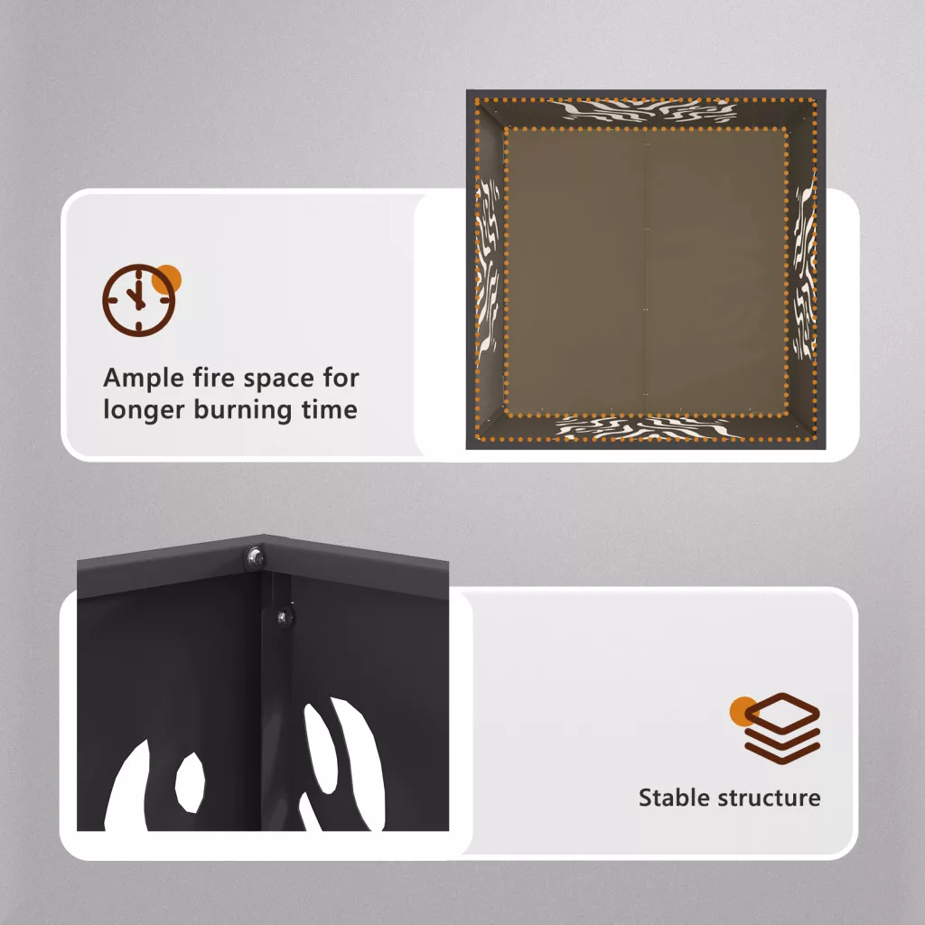 Tűzrakóhely Négyzet Fekete 60x60x40 cm Acél