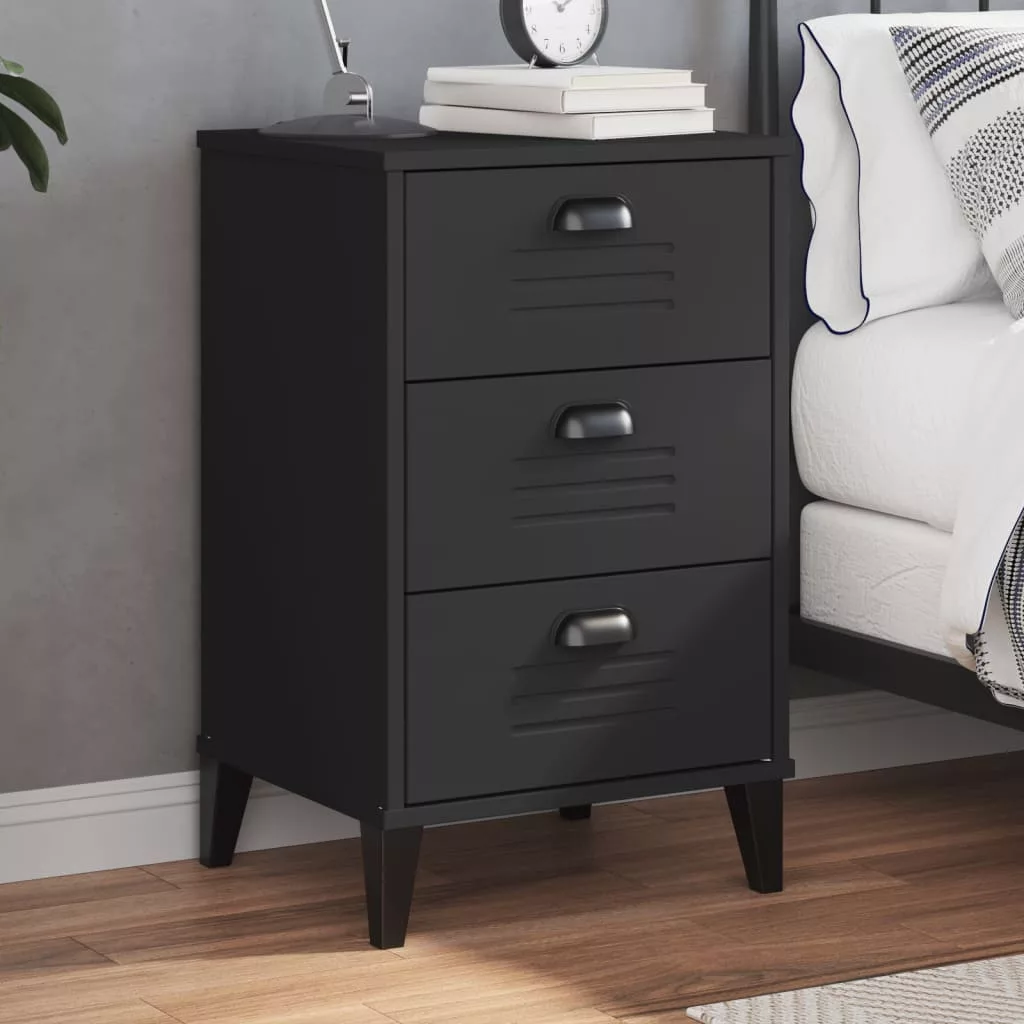 Ez az elegáns éjjeliszekrény jól fog illeni hálószobájába vagy nappalijába, és ipari bájt visz otthonába. Tartós anyag: A szerelt fa kivételes minőségű, sima felületű, szilárd, stabil, és ellenáll a nedvességnek.Bőséges tárolóhely: Az éjjeliszekrény bőséges helyet kínál alapvető holmijai kézközelben történő rendezett tárolásához.Könnyen karbantartható: Az éjjeliszekrény könnyen tisztítható nedves ruhával, és kevesebb karbantartást igényel.Praktikus fogantyú: Az éjjeliszekrény fogantyúi megkönnyítik a szekrény kinyitását és zárását, miközben extra szépséget kölcsönöznek neki. Figyelem:A felborulás elkerülése érdekében ezt a terméket a mellékelt fali rögzítőeszközzel kell használni.