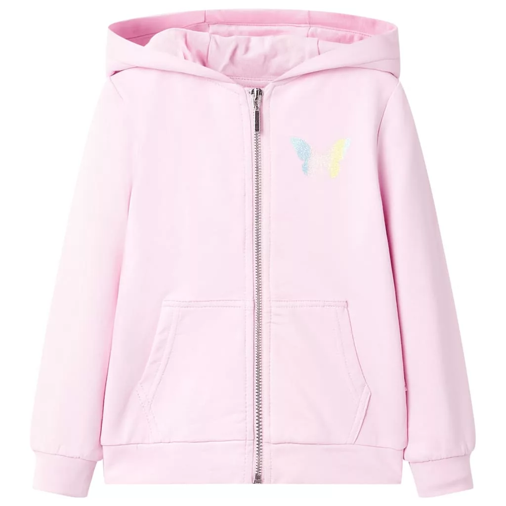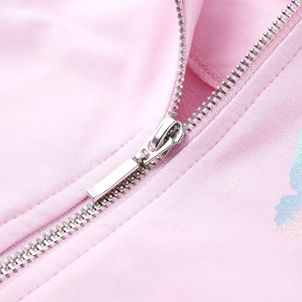 Világos rózsaszín kapucnis gyerekpulóver 116