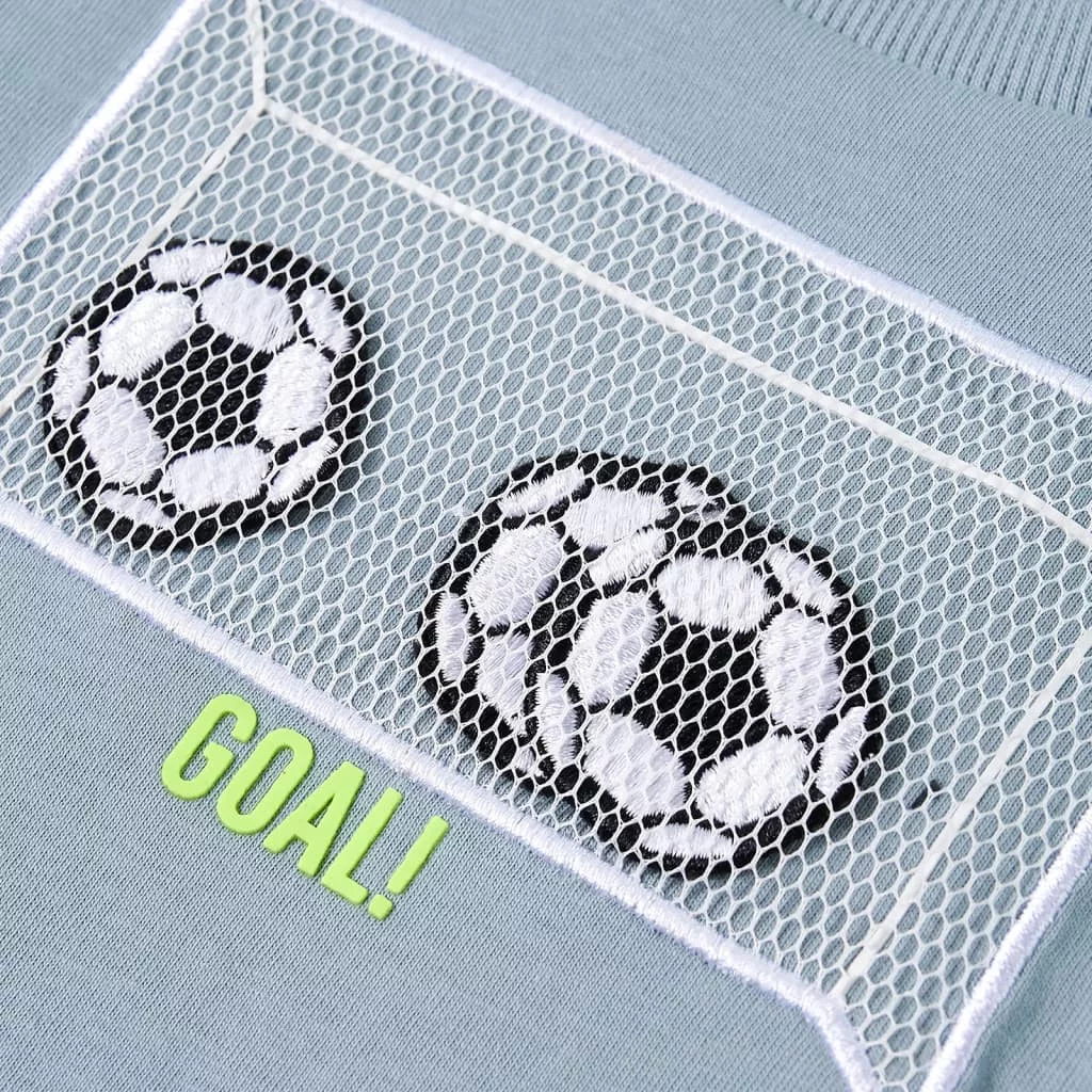 Gyerekruha-kínálatunk a megfizethető, kiváló minőségű és tartós mindennapi viseletet képviseli 1,5 és 10 év közötti gyermekek számára. Kínálatunkban kabátok, pulóverek, ingek és még sok más található változatos stílusban, méretben és színben. A piac magas minőségi színvonalát követve kiváló minőségű anyagokat és fejlett gyártási technikákat alkalmazunk. Ez a gyerek póló hosszú ujjú, kerek nyakkivágással és egyenes modellel rendelkezik. Ezen a világoskék pólón egy focikapu látható. A hosszú ujjú gyermekpóló 100% pamutból készült, amelyet szilikonos és enzimes mosással kezeltek a puha és kényelmes tapintás érdekében. Fontos: A képen látható mérettáblázat az 1,5-10 éves gyermekek méretét ábrázolja, lefedi a magasságot, a mellkast, a derekat és a csípőt. Könnyedén megtalálhatja gyermeke számára a megfelelő méretet.
