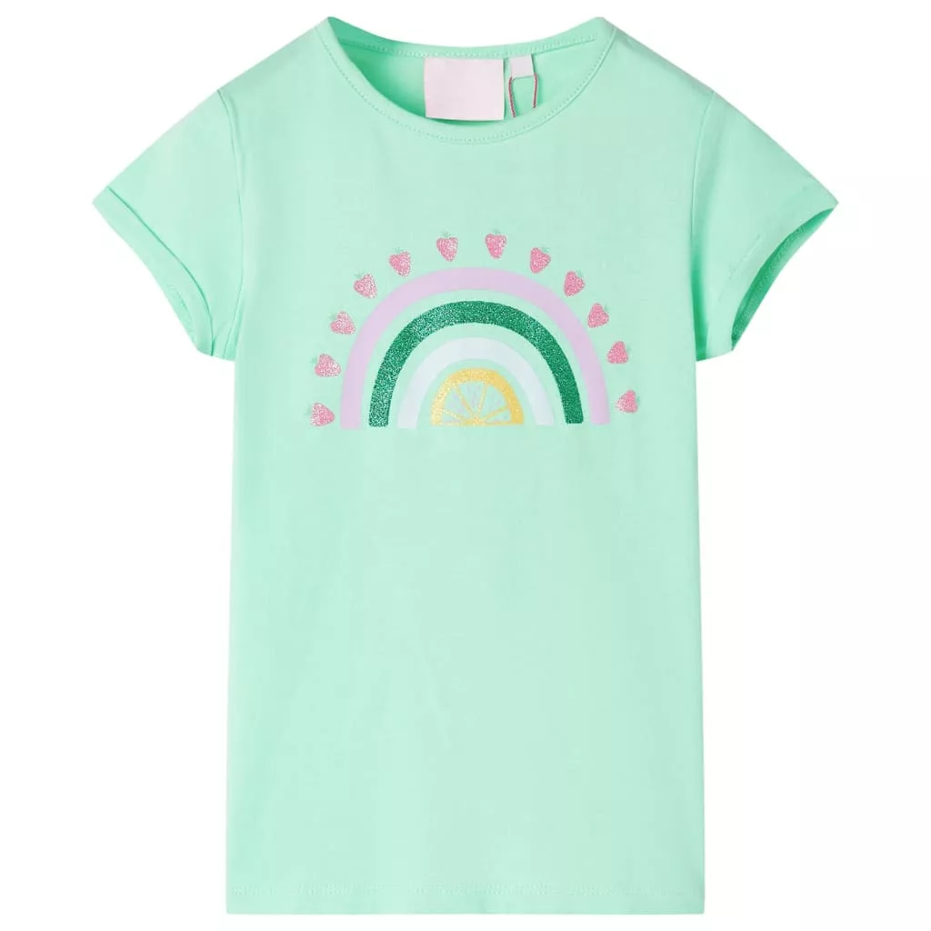 Gyerekruha-kínálatunk a megfizethető, kiváló minőségű és tartós mindennapi viseletet képviseli 1,5 és 10 év közötti gyermekek számára. Kínálatunkban kabátok, pulóverek, ingek és még sok más található változatos stílusban, méretben és színben. A piac magas minőségi színvonalát követve kiváló minőségű anyagokat és fejlett gyártási technikákat alkalmazunk. Ez a gyerekpóló rövid ujjú, felvarrt felhajtással és kerek nyakkivágással rendelkezik, illetve egyenes szabású. Ez a póló csillogó szivárványmintával van nyomtatva, a szivárvány külső széle körül eperrel. A rövid ujjú gyerekpóló 95% pamutból és 5% elasztánból készült a kényelem és a légáteresztés érdekében. Fontos: A képen látható mérettáblázat az 1,5-10 éves gyermekek méretét ábrázolja, lefedi a magasságot, a mellkast, a derekat és a csípőt. Könnyedén megtalálhatja gyermeke számára a megfelelő méretet.