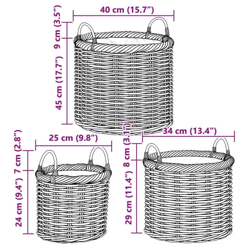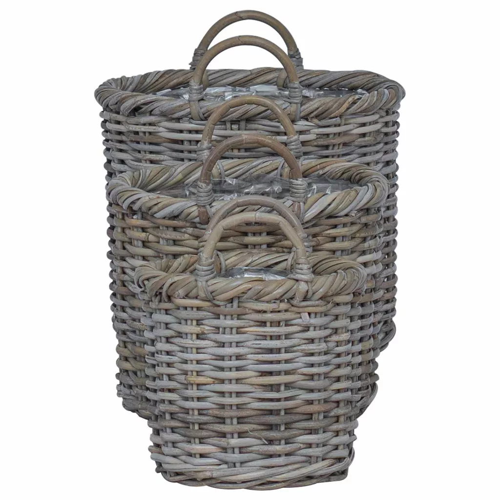 Virágcserepes Kosár tárolóval 3 pcs Szürke Kubu rattán