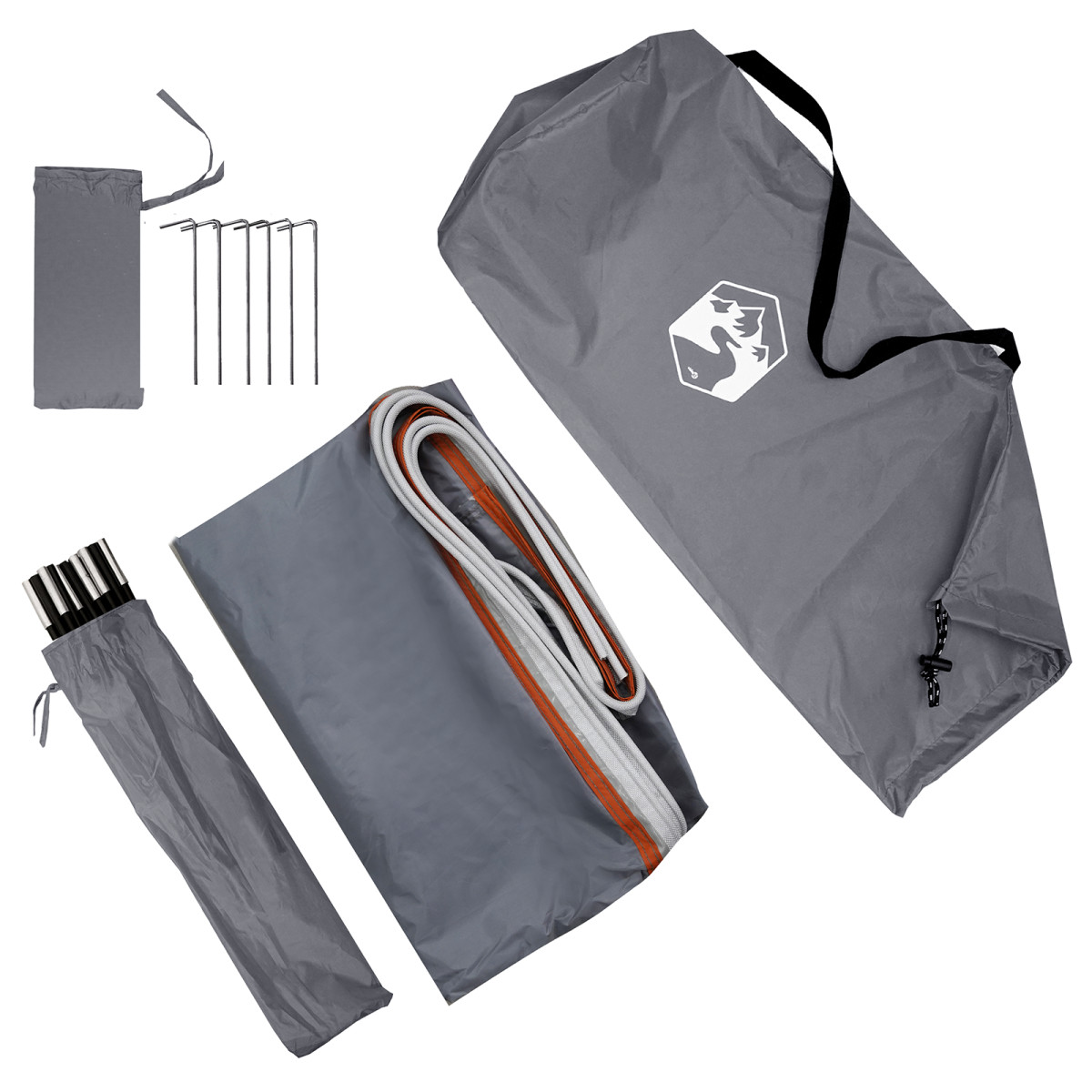 Ez a Hordozható Kültéri Ponyva Menedék a lelkes táborozók számára készült, akik kényelmet és védelmet keresnek az elemekkel szemben. Lehet, hogy szabadtéri kalandra indulsz vagy éppen kertipartit rendezel, ez az okos ponyva mindig jól passzol. Rugalmas, tehát akár a csillagok alatt ücsörögsz vagy BBQ-zol, ez a menedék tökéletesen alkalmazkodik. A sima felület miatt a víz könnyen lecsúszik róla, és a matt felület lazább hangulatot ad neki. A vonzereje a hasznosságában és az egyszerűségében rejlik, minden szabadtéri rajongónak tökéletes megoldás. Prémium Poliészter A felület kiváló minőségű poliészterből készült, ami jól bírja az esőt, és szárazon tart. Simán vízlepergető, opál és poli hálós, megerősített műanyaggal, hogy tartós maradjon, miközben jól néz ki. Az üvegszálas megerősítés könnyű és erős, így egyszerűen kezelhető, amikor kinyitod vagy összecsukod. Teljes Kialakítás Ez a menedék minden szükséges horgonyt tartalmaz, két ember kell a felállításhoz. Minden rész úgy lett megtervezve, hogy jól támassza alá, így nagyszerű kiegészítője bármely kültéri helynek. Az íves forma erős ellenállást biztosít a széllel szemben, miközben egyszerű a felállítás. Minden rész összehangoltan működik, így egy erős szerkezet, ami bármilyen időjárási kihívást elvisel. Funkcionális Jellemzők A ponyva brillírozik a lángálló és szélálló tulajdonságaival, védelmi eszközként és praktikus kemping kellékként funkcionál. Ravasz összecsukható dizájnja miatt könnyen tárolható és hordozható. Tökéletes felfedezőknek és természetkedvelőknek, ez a ponyva ügyesen alkalmazkodik a környezetéhez. Sokoldalú Használat Lenni kempingezés vagy kültéri esemény, ez a menedék kiváló lehetőséget ad, rugalmas fedelet biztosít lakóautó helyekhez és túrákhoz. Könnyedén alkalmazkodik a különböző igényekhez, legyen szó homokos strandról vagy hűvös erdőről. Nem tükröződő jellege pedig privát szférát ad, még ha sokan is vagyunk a közelben. Könnyű Karbantartás A ponyva karbantartása egyszerű—csak söpörni kell róla a koszt, amikor száraz. Kerüld a durva vegyszereket és csiszolószereket, hogy sokáig jó állapotban maradjon. Ez a könnyű karbantartás biztosítja, hogy a menedéked mindig toppon legyen, készen a következő kalandra, akár úton, akár otthon. Figyelmeztetés Tartson távol minden láng- és hőforrást ettől a termékszövettől.