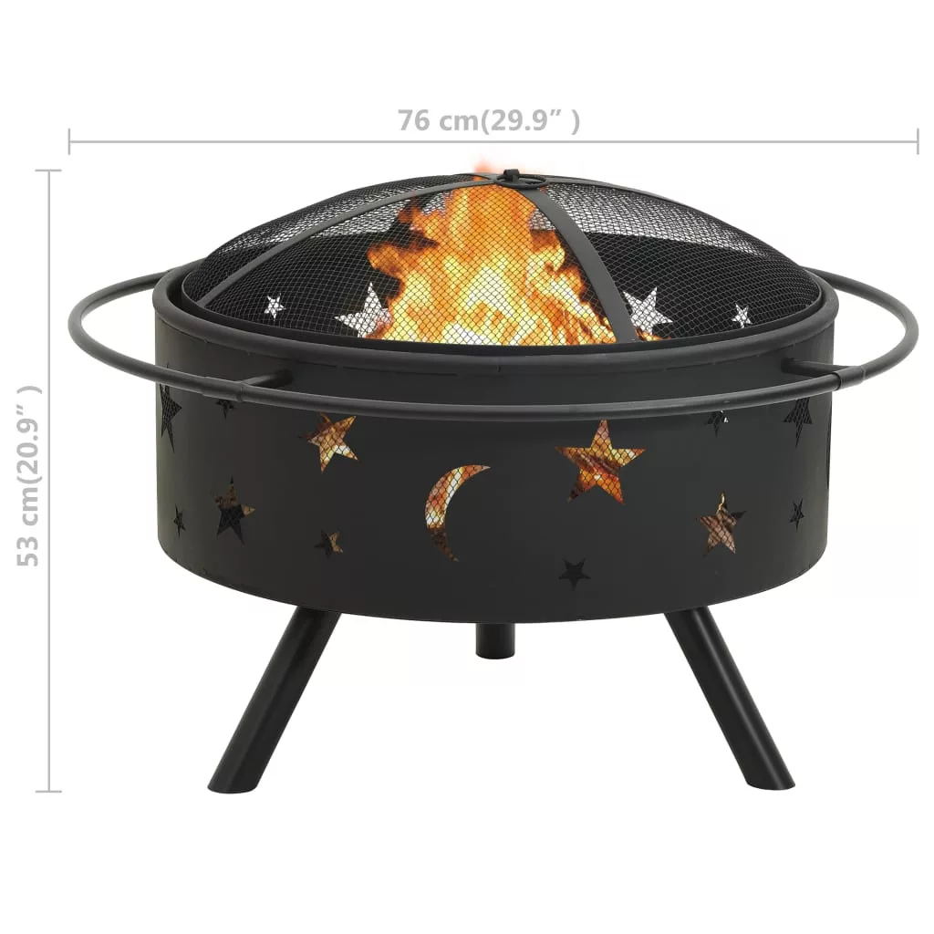 XXL acél tűztál piszkavassal 76 cm
