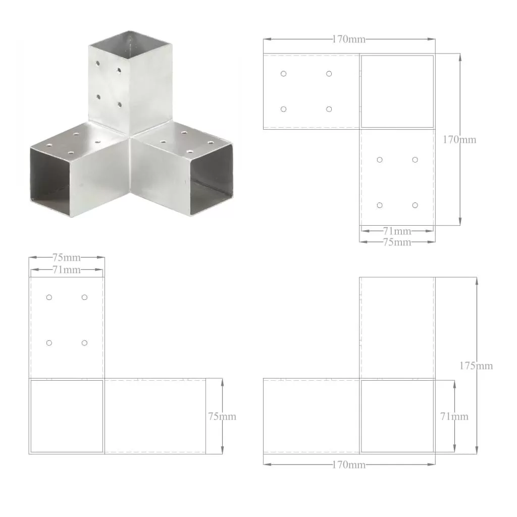 Oszloptartóink segítségével saját elképzelései szerint tervezheti meg és használhatja fel oszlopait a kertben például kültéri fészerekhez vagy pavilonokhoz. A horganyzott tartó összeköti és stabilan tartja a gerendákat. Az összes csatlakoztató gyári lyukakkal lett ellátva. Ez a gerendatartó 3 négyzet alakú, 71 mm-es fa gerenda számára való. Figyelem: A szállítmány nem tartalmaz csavarokat és rögzítőelemeket.