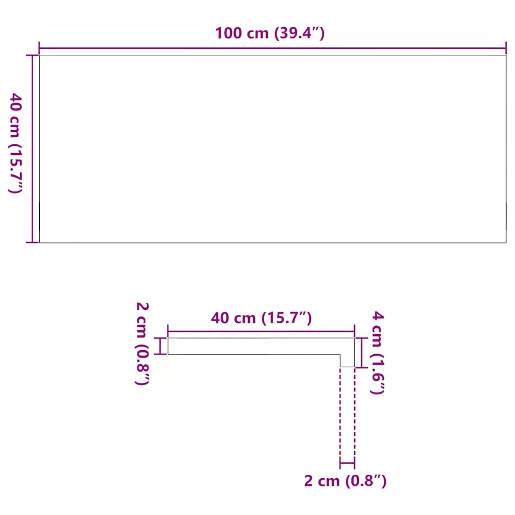 100 x 40 x 2 cm