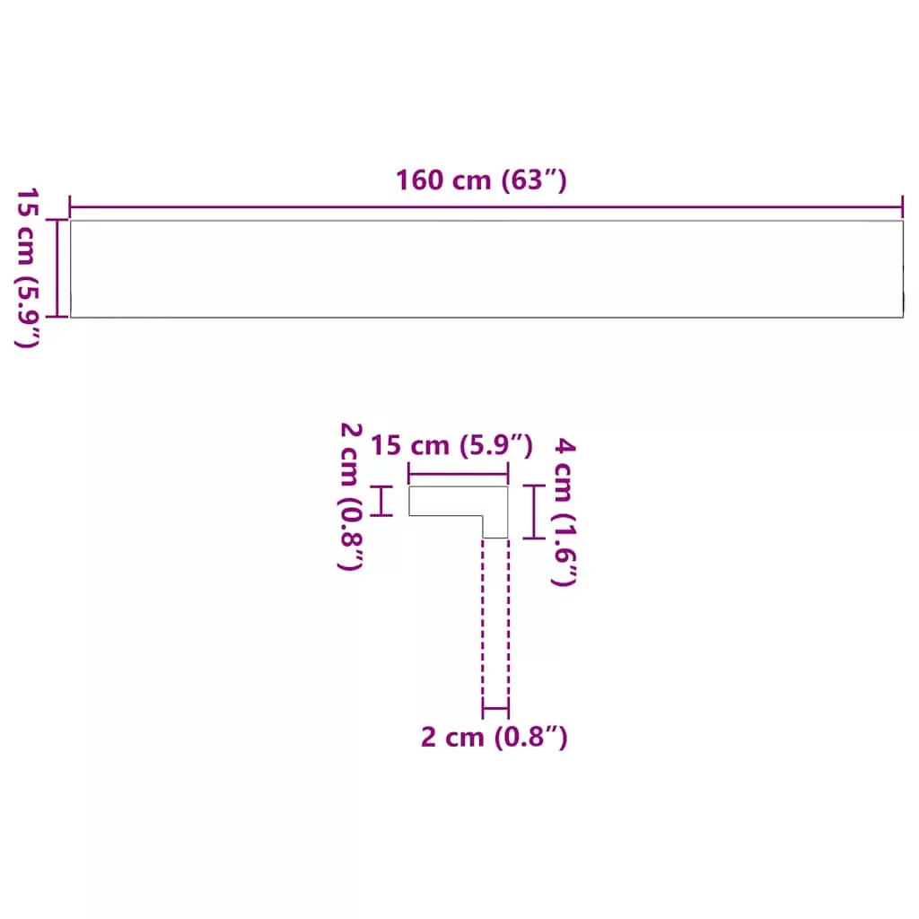 160 x 15 x 2 cm
