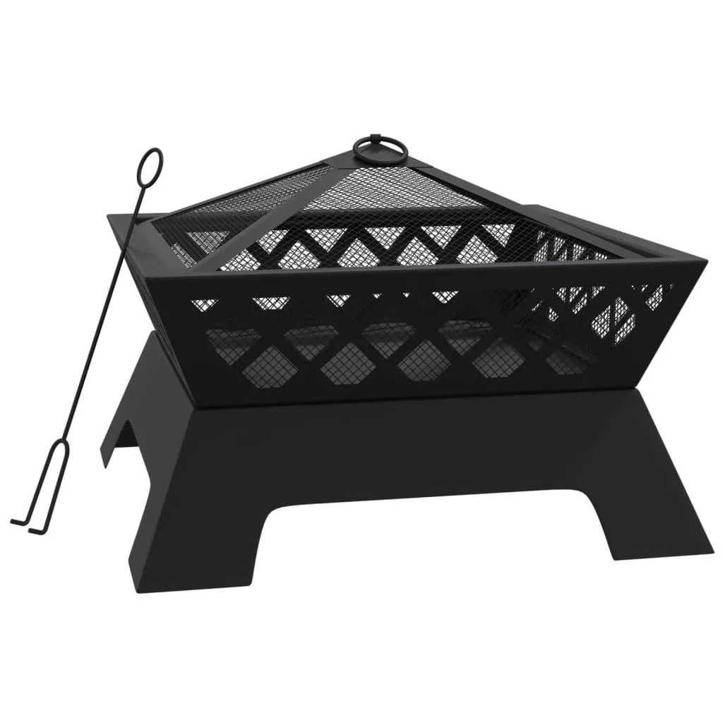 acél XXL méretű tűztál piszkavassal 50 cm