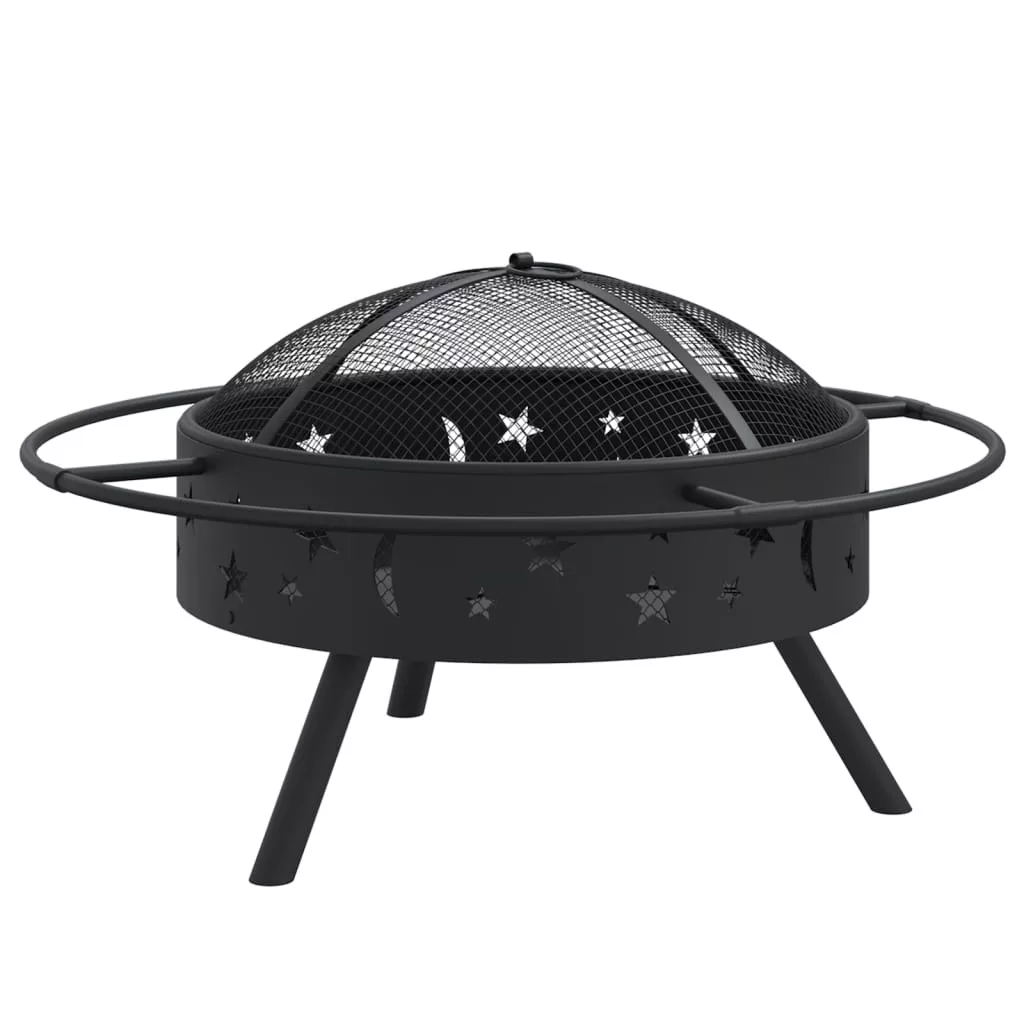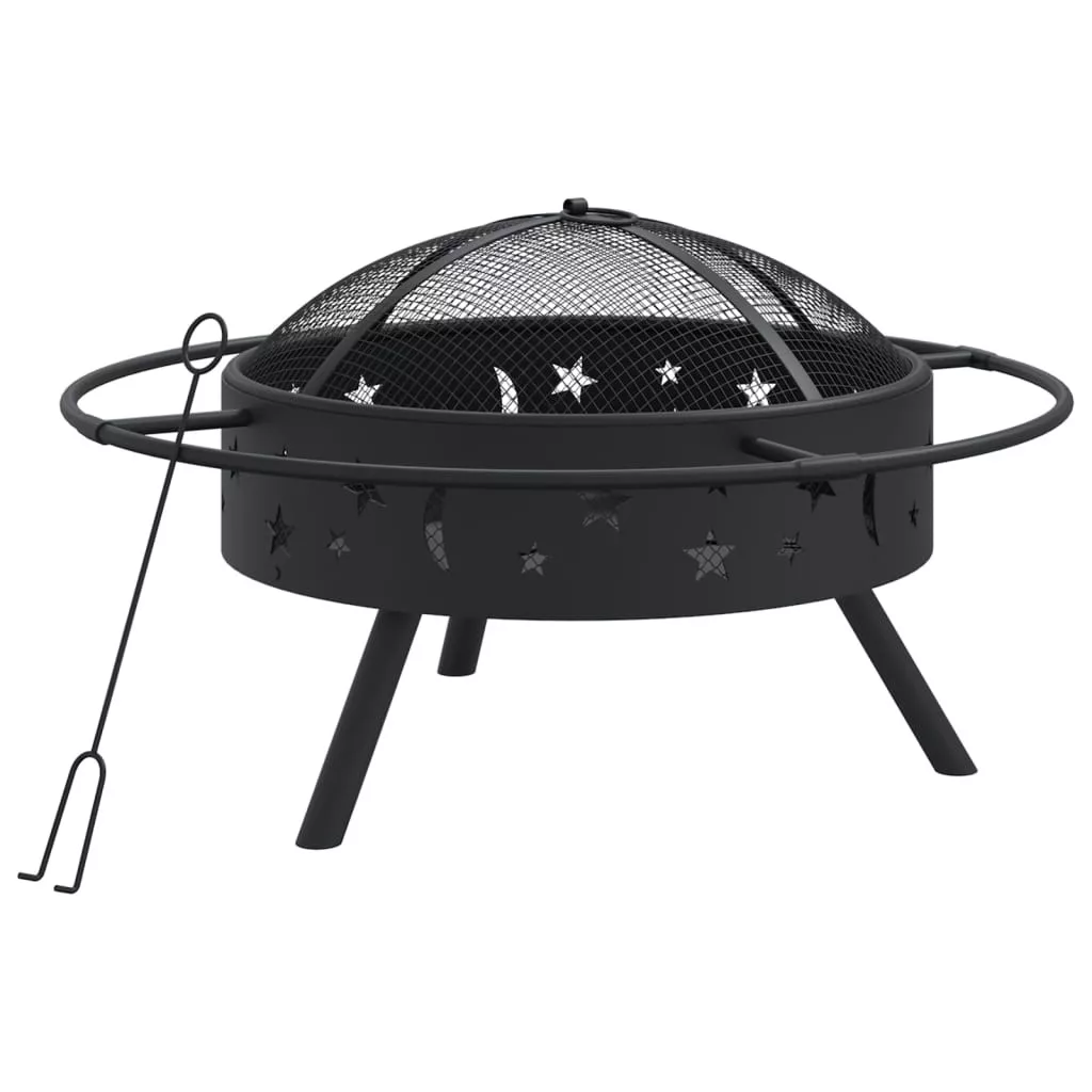 acél XXL méretű tűztál piszkavassal 70 cm