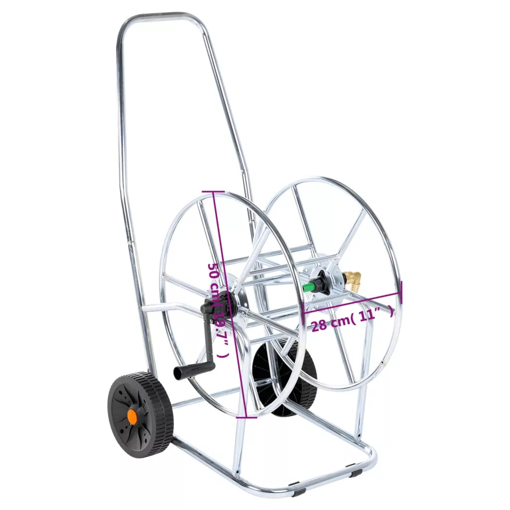 Ez a kerekes tömlődob kompakt tárolási megoldást biztosít a tömlők elrendezéséhez, és hatékonyan megakadályozza az összegabalyodást. Nagy rugalmasság: A hosszabb vonófogantyúnak és a beépített kerekeknek köszönhetően az orsó könnyen mozgatható a kertben.Stabil és tartós szerkezet: A horganyzott acél szerkezetnek köszönhetően tartós és stabil, és ellenáll a korróziónak és a zord időjárási viszonyoknak, így hosszú élettartamú.Rendetlenségtől mentes: A ferde tömlőcsatlakozás megakadályozza a tömlő elcsavaródását és meghajlását a kényelmes használat érdekében.