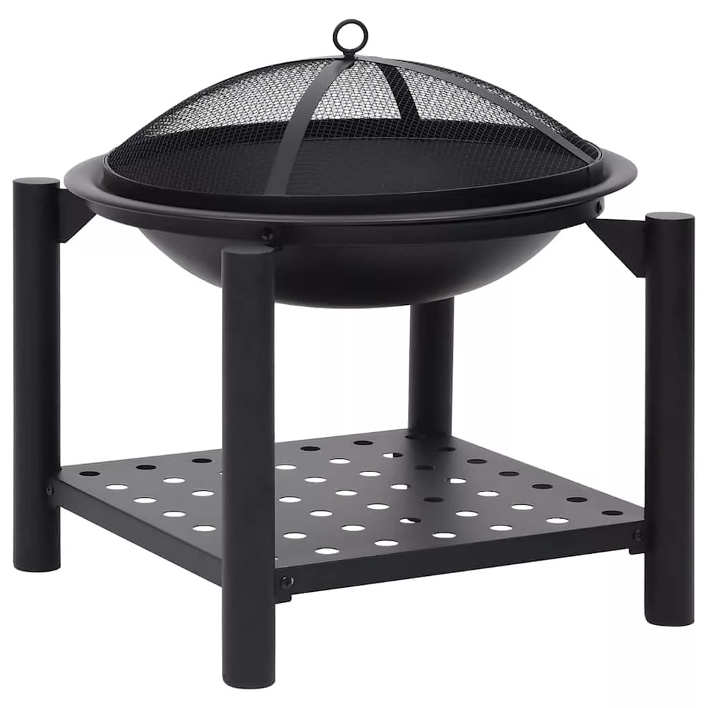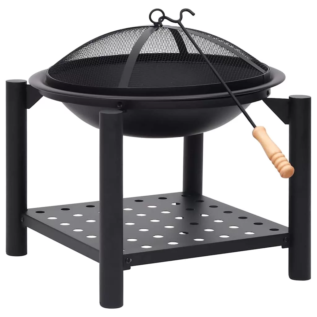 Ez a tűztál dekoratív és hangulatos kiegészítő lesz kertjében vagy teraszán, amikor az esti órákban lehűl a levegő. Ez az acélból készült tűzrakóhely kiválóan nyeli el és sugározza a hőt. A méretes tálnak köszönhetően nagy tűz rakható a tűztálban, amit órákig élvezhet családjával. A háló lehetővé teszi az égő tűz megfigyelését, elzárja a tüzet a biztonság érdekében, és megakadályozza a szikrák és a törmelék kirepülését. Emellett a hálós fedélben található kényelmes gyűrűvel könnyen hordozható. A mellékelt piszkavassal a hálós fedelet is leveheti, és a rönköket is átrendezheti. Emellett a polc további tárolóhelyet biztosít tűzifa elhelyezéséhez. Fontos megjegyzések: Csak kültéren használható. A sérülések és az égési sérülések elkerülése érdekében ne érjen a termékhez, ha égő fa van benne, vagy ha nemrég oltotta el benne a tüzet. Figyelem: Csak kültéri használatra. Soha ne használja a grillt a házban, zárt térben, sátor alatt, fa alatt vagy fák között. Ne használjon vagy öntsön benzint, metil-alkoholt vagy petróleumot a lángoló szénre. Helyezze egy szilárd és sík felületre, távol a fa kerítésektől, cserjéktől, fáktól, fészerektől és üzemanyagtartályoktól. A grill nagyon forróvá válhat. Tartsd távol a kisgyerekeket és háziállatokat a főzési területtől. Mindig egy felnőttnek kell felügyelnie a grill használatát. Ne mozgassa a grillt, miközben használatban van, vagy ha még mindig forró. A főzőrács állítása vagy kezelése során mindig használjon hőálló kesztyűt. A grillt legalább 30 percig fel kell melegíteni, és az üzemanyagot forrón kell tartani az első főzés előtt. A szén mennyisége nem haladhatja meg a szénrekesz kapacitásának 75%-át, és egyenletesen kell eloszlatni. FIGYELEM! A grill nagyon forró lesz használat közben. NE mozgassa működés közben. Ne használja beltérben! FIGYELEM! Tartsa távol a gyermekeket és háziállatokat. Ne használja a grillt zárt térben, például házakban, sátrakban, lakókocsikban, lakóautókban vagy hajókon. Nagy a veszélye a fulladásnak és a szén-monoxid mérgezésnek, ami akár halálhoz is vezethet.FIGYELEM: Ne használjon szeszt vagy benzint a be- vagy újragyújtáshoz!