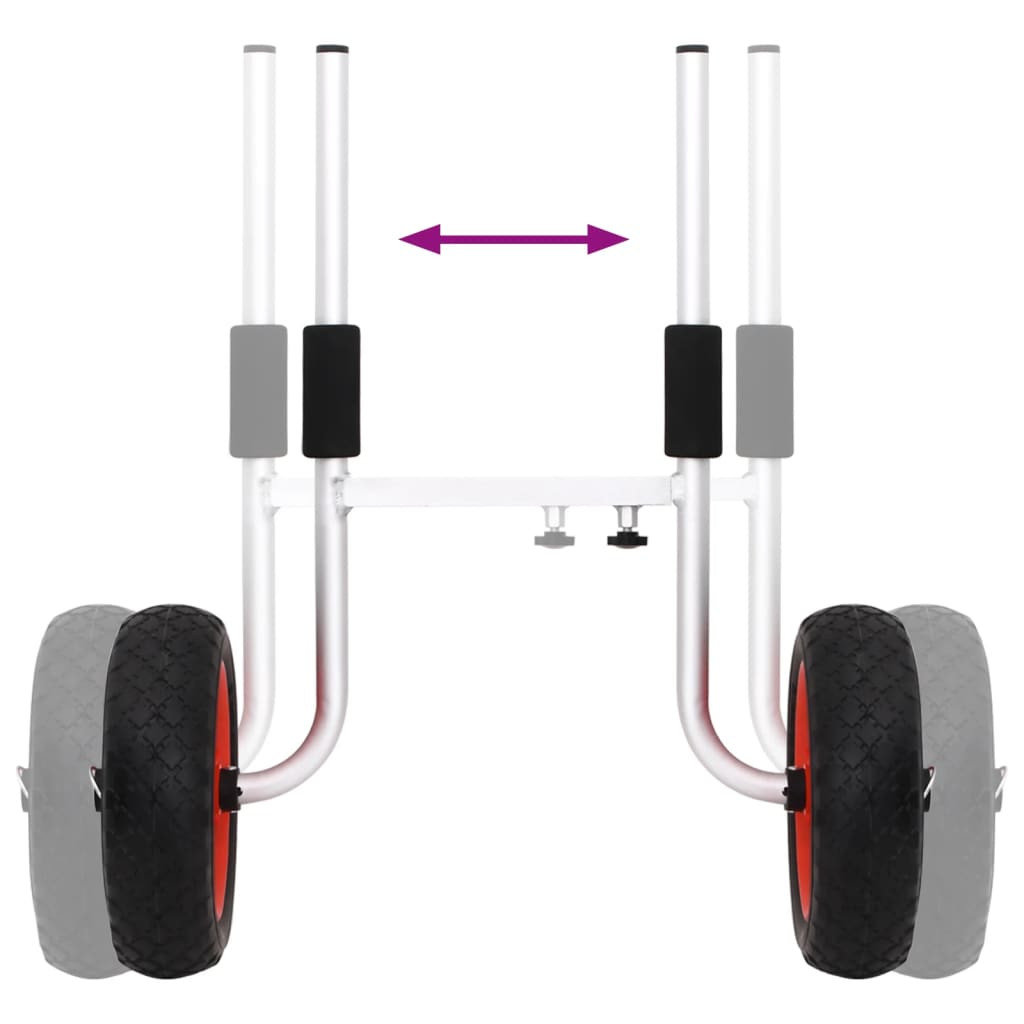 A kajak kocsi ideális eszköz különféle kajakok hatékony szállítására. Könnyen használható: Kövesse ezt a három egyszerű lépést a kajakkocsi használatához. Először fordítsa oldalra a kajakot. Ezután állítsa be a kocsi megfelelő lyuktávolságát, és csúsztassa be a kajak nyílásaiba. Végül lassan állítsa fel a kajakot, és kezdődjön a szórakozás.Praktikus kialakítás: A kerekek jobban elnyelik az ütéseket és áthaladnak az akadályos szakaszokon, így a kocsi alkalmas különféle terepekre, beleértve a homokos strandokat és kavicsos utakat.Gyorsan levehető: A kerekek és a váz levehető, így néhány másodperc alatt leveheti a kerekeket és a vázat az egyszerű tárolás és szállítás érdekében.Állítható szélesség: Ez a kajak kocsi állítható teherhordó kialakítással rendelkezik, így különféle, különböző leeresztőnyílás-szélességű kajakokhoz alkalmas.Védelem: A kajak kocsi habszivacs bevonattal látja el a tartó tetejét, hogy jobban rögzítse a kajak alját, miközben megvédi a kajakot.