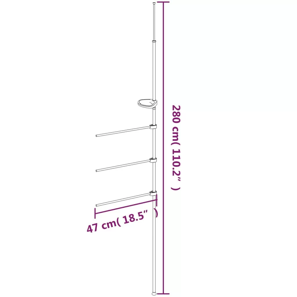 Úgy szeretné szárítani törölközőit, hogy ne kelljen lyukakkal tönkretegye a fürdőszoba falait? Akkor ez a törülközőtartó a tökéletes megoldás! Korrózióálló anyag: Az alumínium fém könnyű és erős. Önvédő oxidréteggel ellenáll a korróziónak. Ez az alumíniumból készült törölközőtartó évekig használható.Helytakarékos: A törülközőtartó nagyszerű megoldás a törölközők szűk helyen történő rendezésére. A 3 masszív karral ellátott, szabadon álló törölközőtartó segít kihasználni a függőleges teret törölközők, törlőkendők és egyebek felakasztására anélkül, hogy sok helyet foglalna.Rugalmas kialakítás: A törülközőtartó állvány karjai állíthatók, magassága akár 2,8 méterrel is meghosszabbítható, hogy megfeleljen az Ön különböző igényeinek.Többcélú: Ez a függőleges törölközőtartó nem korlátozódik a kéztörlő tartására, hanem ékszerek felakasztására is alkalmas.