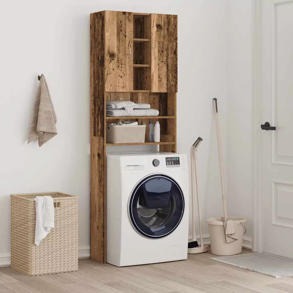 antik fa színű mosógépszekrény 64 x 25,5 x 190 cm