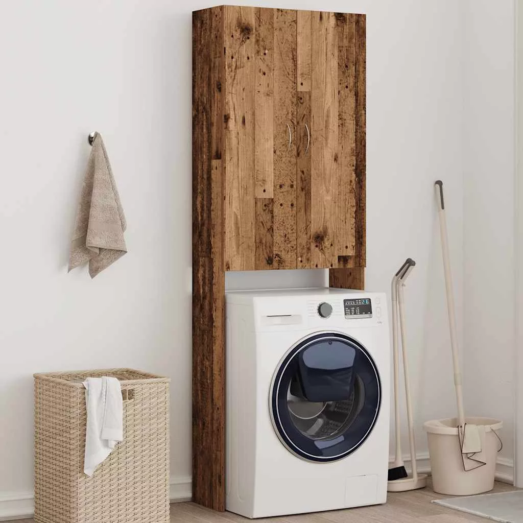 antik fa színű mosógépszekrény 64 x 25,5 x 190 cm