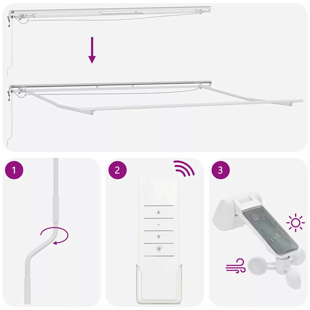 Teremtsen kellemes és hűvös helyet a teraszon, és védje meg magát az UV-sugaraktól ezzel a kihúzható napellenzővel! Vízálló és UV-álló szövet: A napellenző szövet nagy sűrűségű poliészterből készül, PU bevonattal, amely vízálló, valamint UV- és fakulásálló.Automata funkció: A napellenzőt a mellékelt távirányítóval könnyedén kinyithatja és visszahúzhatja.Könnyen kezelhető: A szög és a magasság állítható, hogy megfeleljen az Ön különböző igényeinek. A napellenző a hosszú hajtókarral zökkenőmentesen nyitható és visszahúzható.LED-lámpák és szélérzékelő: A napellenző beépített LED-lámpái megvilágítják kültéri környezetét, ezáltal hangulatos és romantikus légkört teremtve, amikor lemegy a nap. Szélérzékelővel is fel van szerelve, amely erősen szeles napokon automatikusan becsukja a napellenzőt.Széleskörű alkalmazás: A kihúzható napellenző egyszerű és stílusos kialakítású, amely jól illeszkedik otthoni vagy kereskedelmi környezetébe. Különféle helyekre alkalmas, például erkélyre, teraszra, udvarra, éttermekbe, kávézókba, üzletekbe stb.