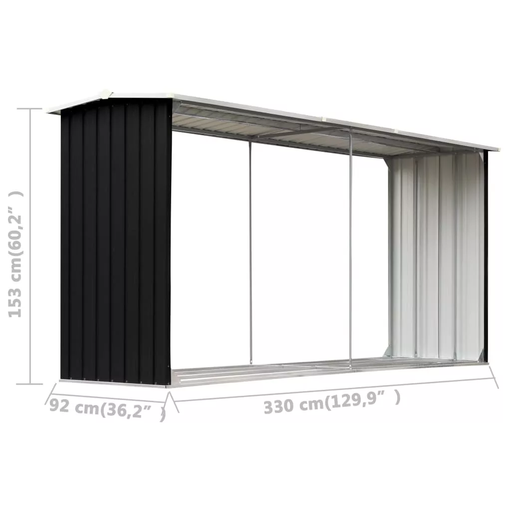 antracitszürke horganyzott acél tűzifatároló 330 x 92 x 153 cm