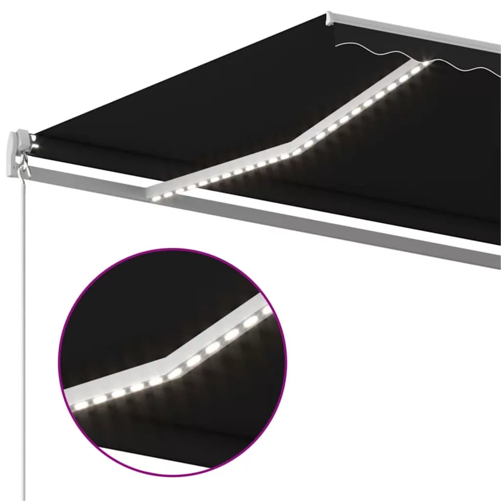 antracitszürke kézzel behúzható LED-es napellenző 600x300 cm