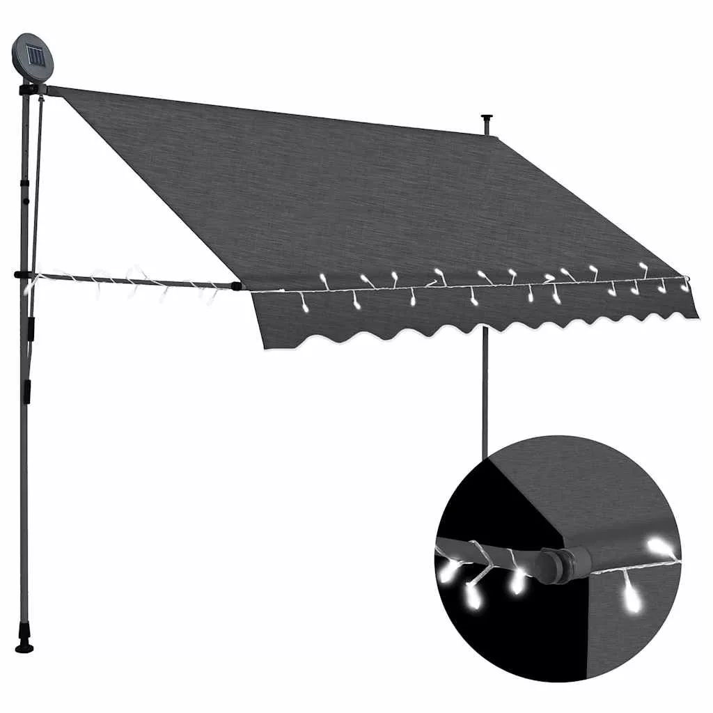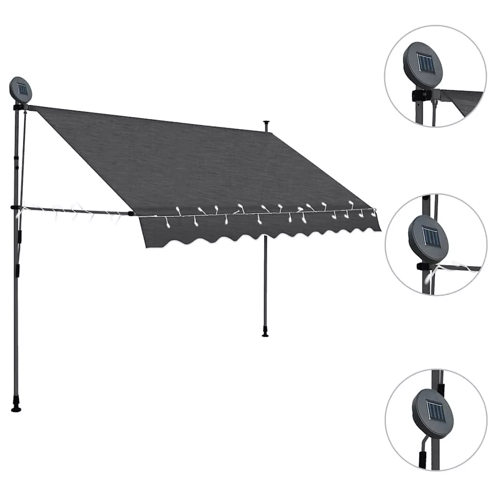 antracitszürke kézzel kihúzható LED-es napellenző 250 cm