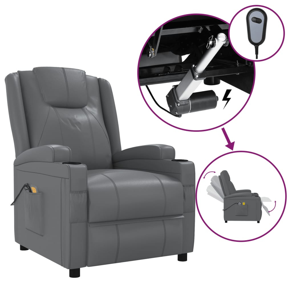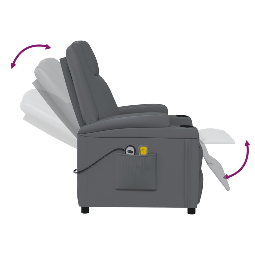 Dőljön hátra, és engedje el magát ebben a rendkívül kényelmes elektromos masszázsfotelben! Elektromosan dönthető funkció: A fekvőfotel elektromos motorral dönthető. 3-féle pozícióba dönthető, így kényelmesen beállíthatja a háttámlát és a lábtámaszt a mellékelt 2 gombos kézi vezérlővel.Rezgő funkció: A 6 masszázspont célzottabb masszást biztosít. Emellett a mellékelt kézi vezérlővel kiválaszthatja a különböző masszázsprogramokat. A masszázs funkciót az USB csatlakozó táplálja, de a hitelesített 5V-os USB tápforrást nem tartalmazza.Kényelmes ülés: A vastagon párnázott ülés, a háttámla és a széles, műbőrrel borított kartámasz kellemes és meleg érzést biztosít, így szinte ölelést kap ülés közben. A műbőr rendkívül tartós anyag. Foltálló, így nedves ruhával könnyen tisztítható. A sima felület fényűző megjelenésű, és a valódi bőr szépségét biztosítja.Masszív és stabil váz: A fából és fémből készült váz erős szerkezetet és stabilitást biztosít. Ez a dönthető karosszék kényelmes és tartós.